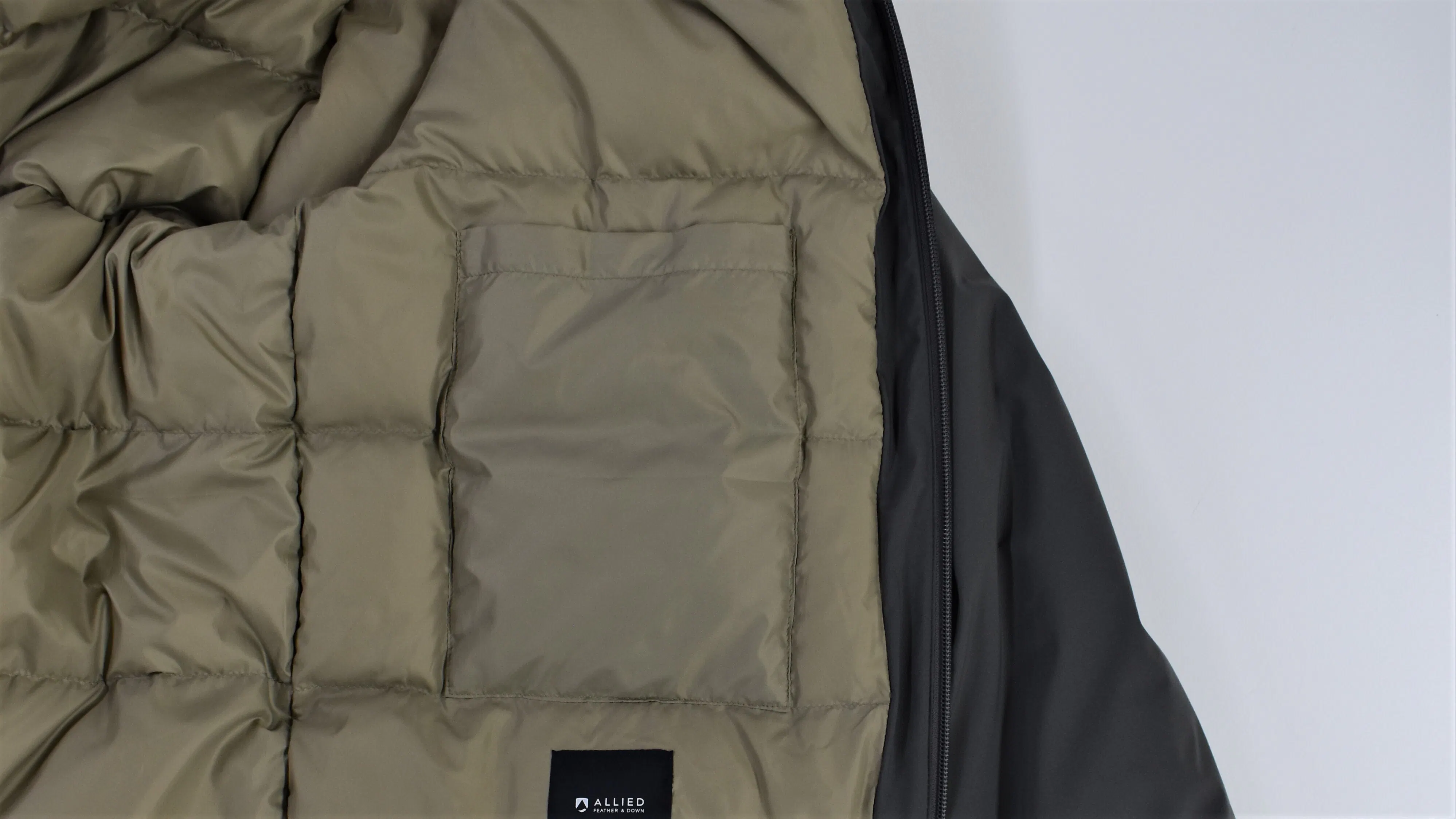 世界でも有数のダウンサプライヤー『ALLIED FEATHER +DOWN』の750 FILL POWER WHITE DUCK DOWN90%を約110g (Lサイズ)使用しています。FILL POWER (フィルパワー) とはDOWNのかさ高を示す単位で数値が大きいほど多くの空気を含むことが出来るため、保温性が高いと言えます。一般的には600 FILL POWER 前後を使用している製品が多い中、750 FILL POWER と保温性に優れたダウンを使用しています。