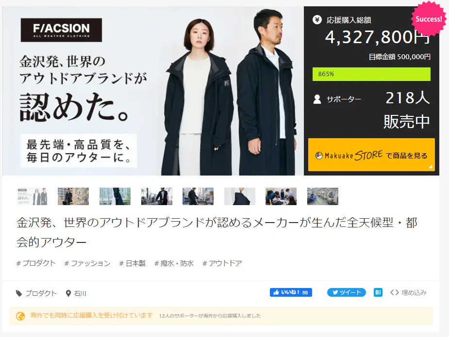 以前行ったMakuakeでのレインウェアのプロジェクトでは多くの応援を頂きました。