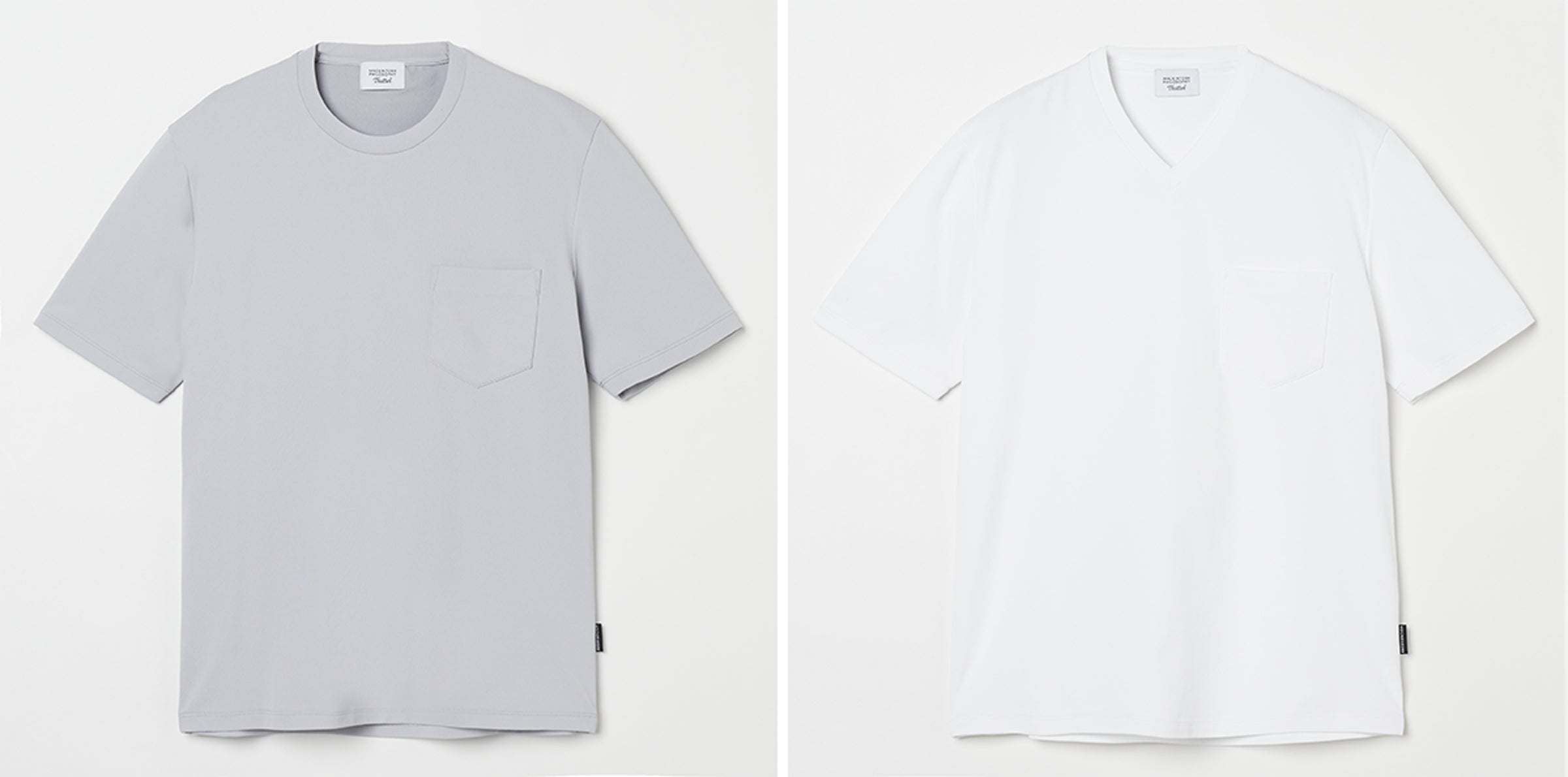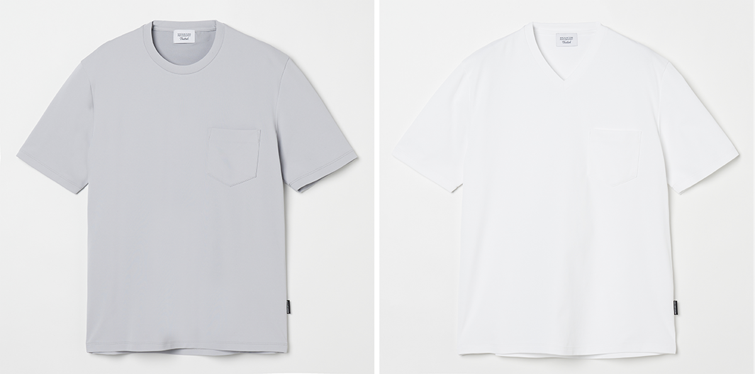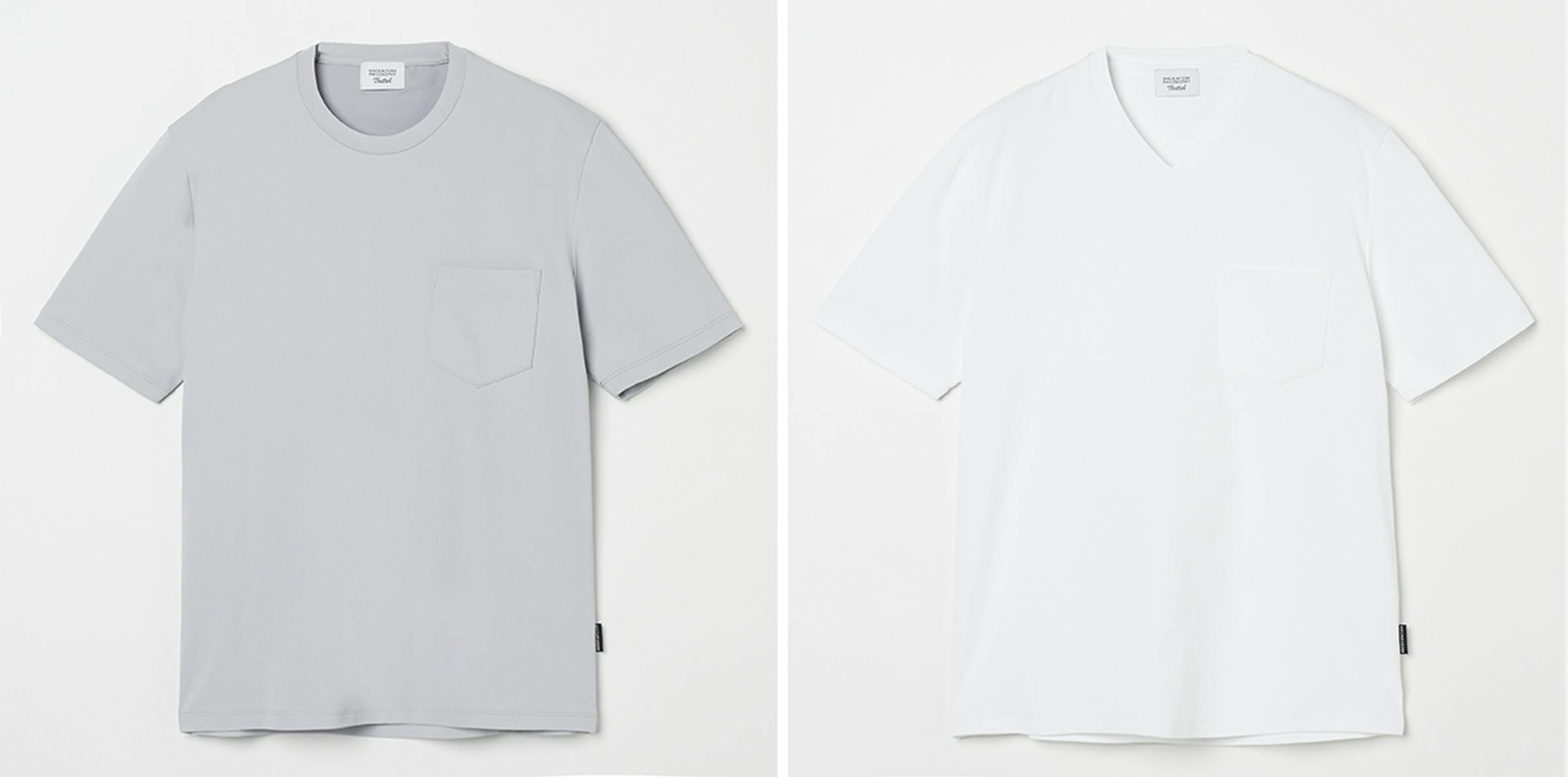 一見するとよくあるクルーネック&VネックのTシャツですが、どちらもジャケットを羽織ることを想定して作られています。