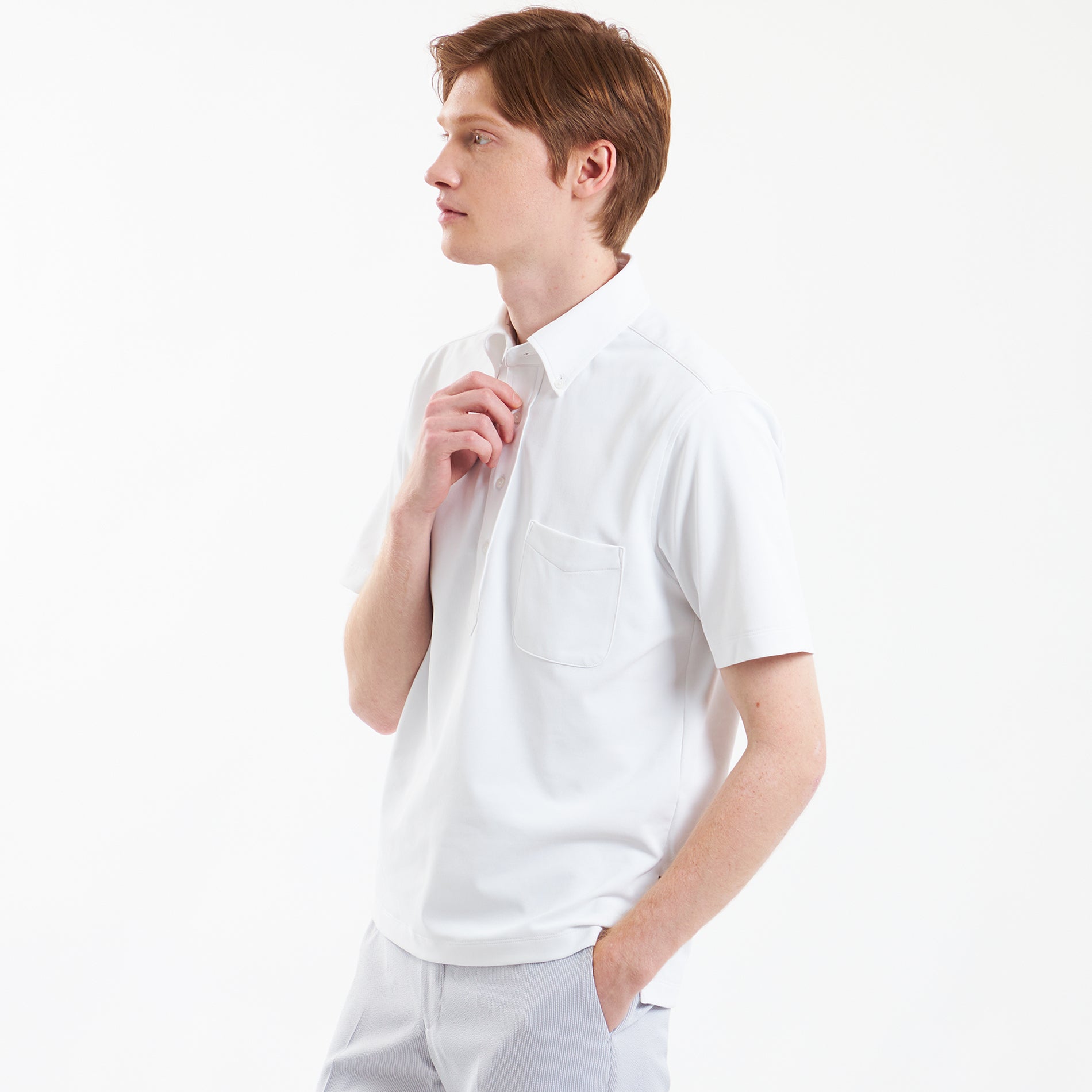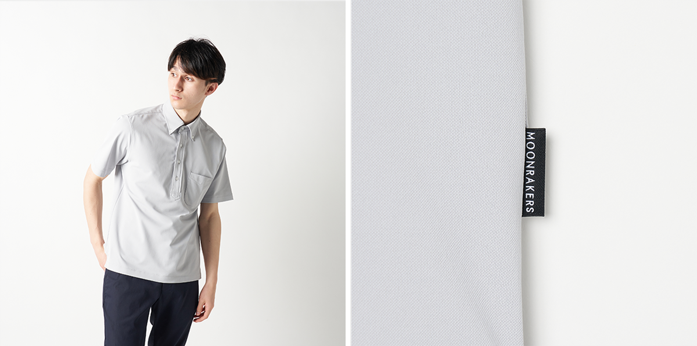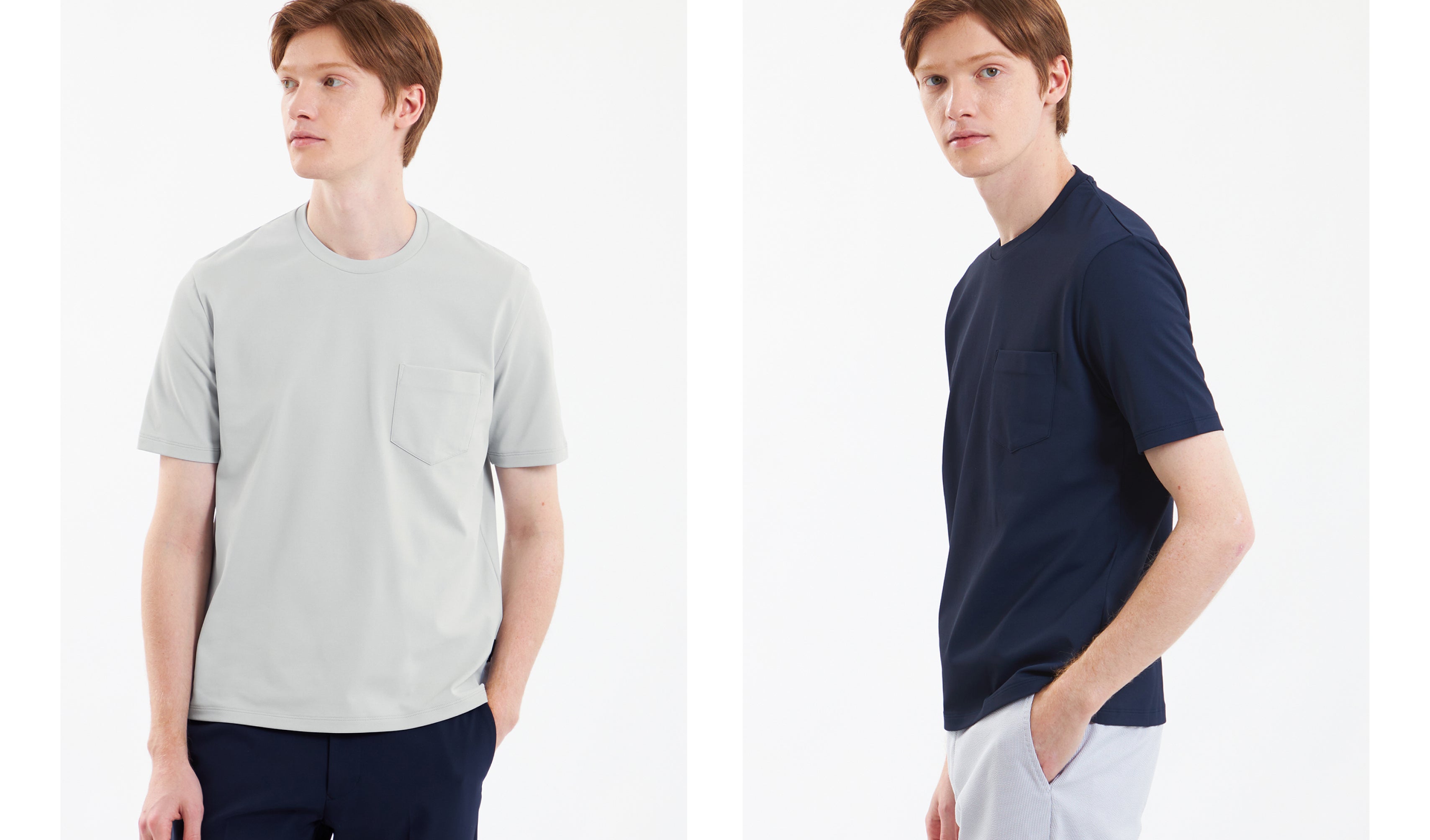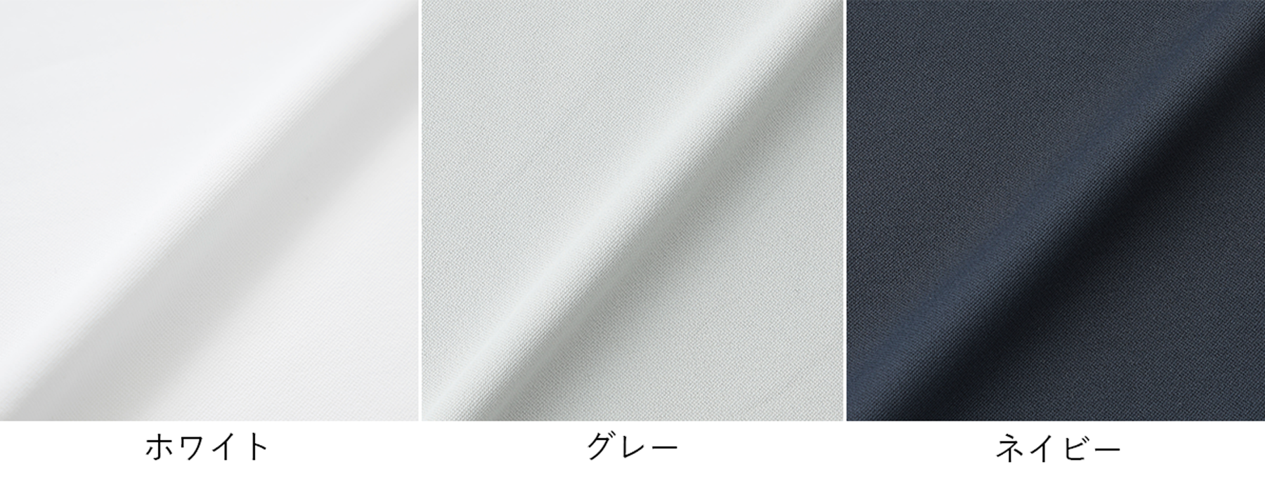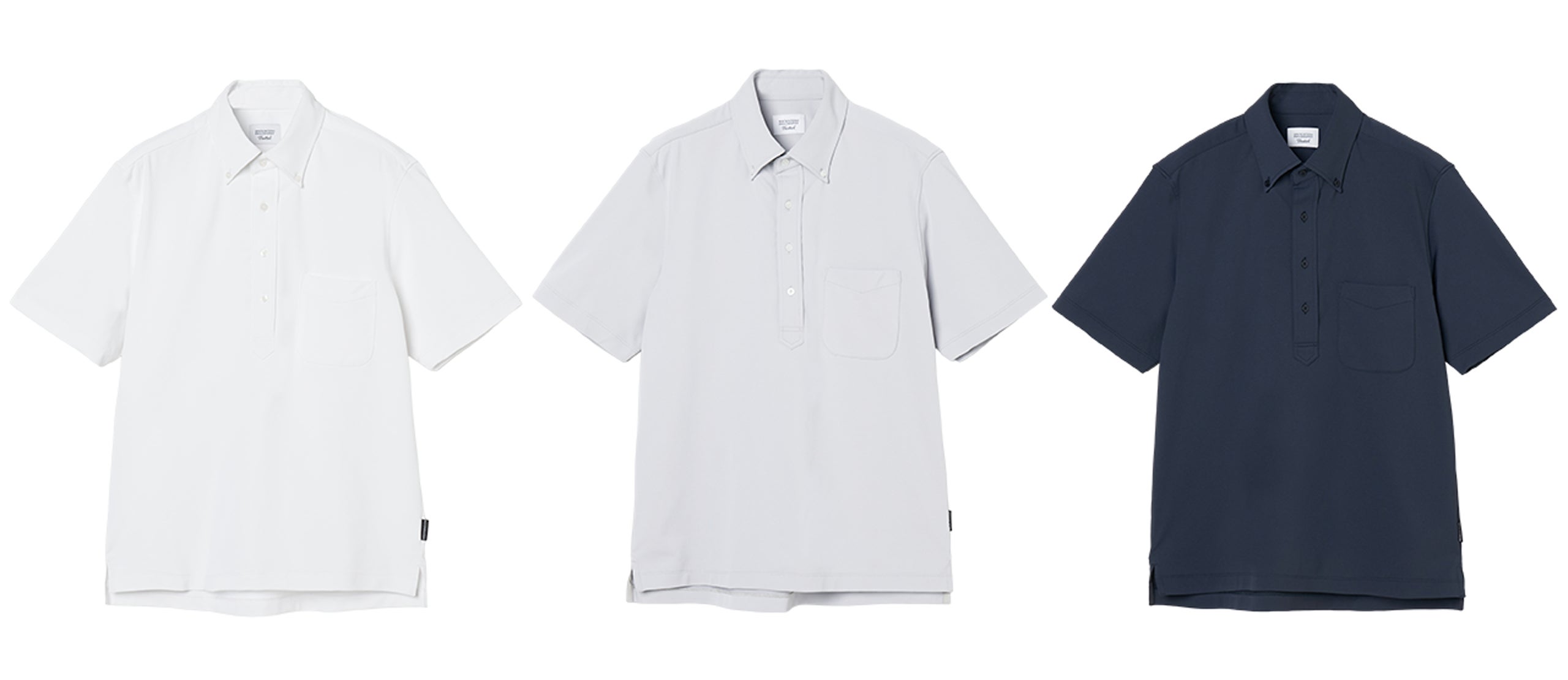 ポロシャツとTシャツは、ホワイト・グレー・ネイビーの3色をラインナップ。これはビジネススタイルにおける基本色でもあるため、手持ちのアイテムとも合わせやすく、どんなシーンにもマッチします。