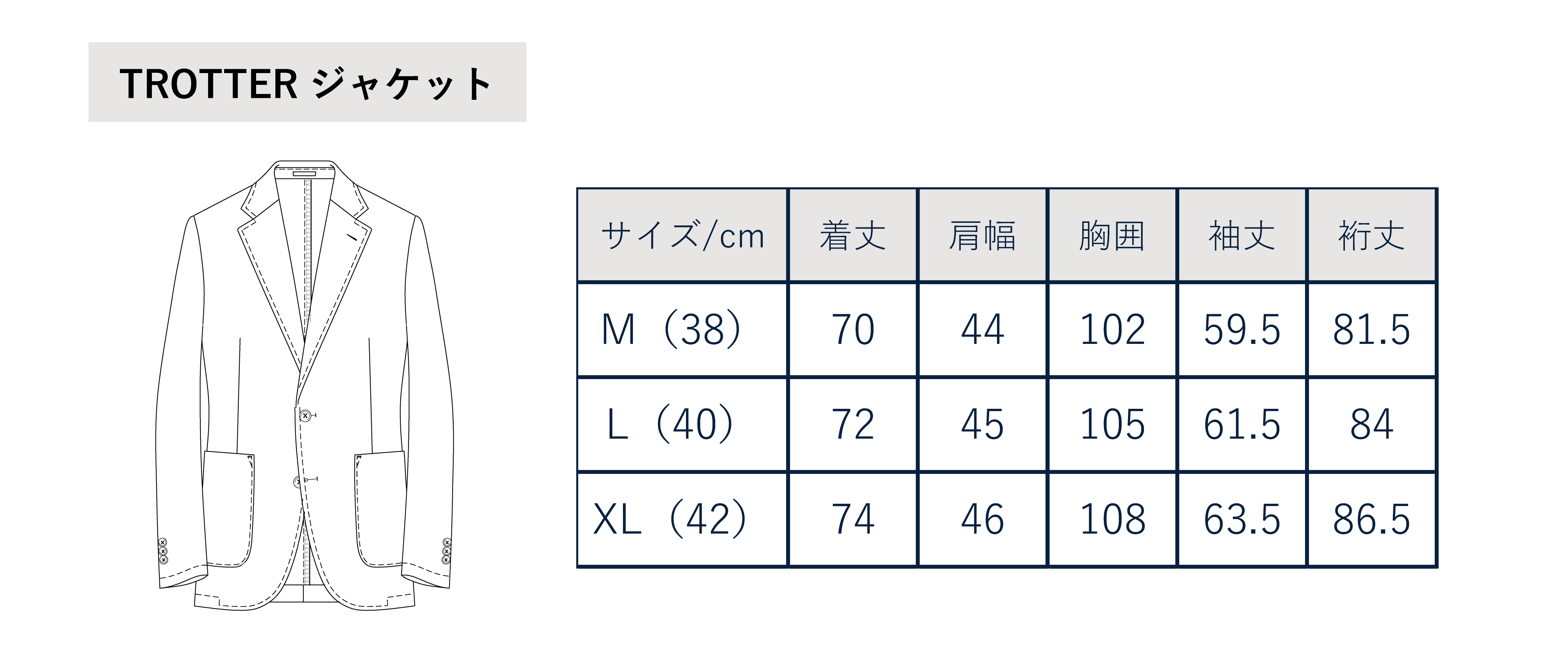 サイズはM(38)・L(40)・XL(42)の3サイズとなります。