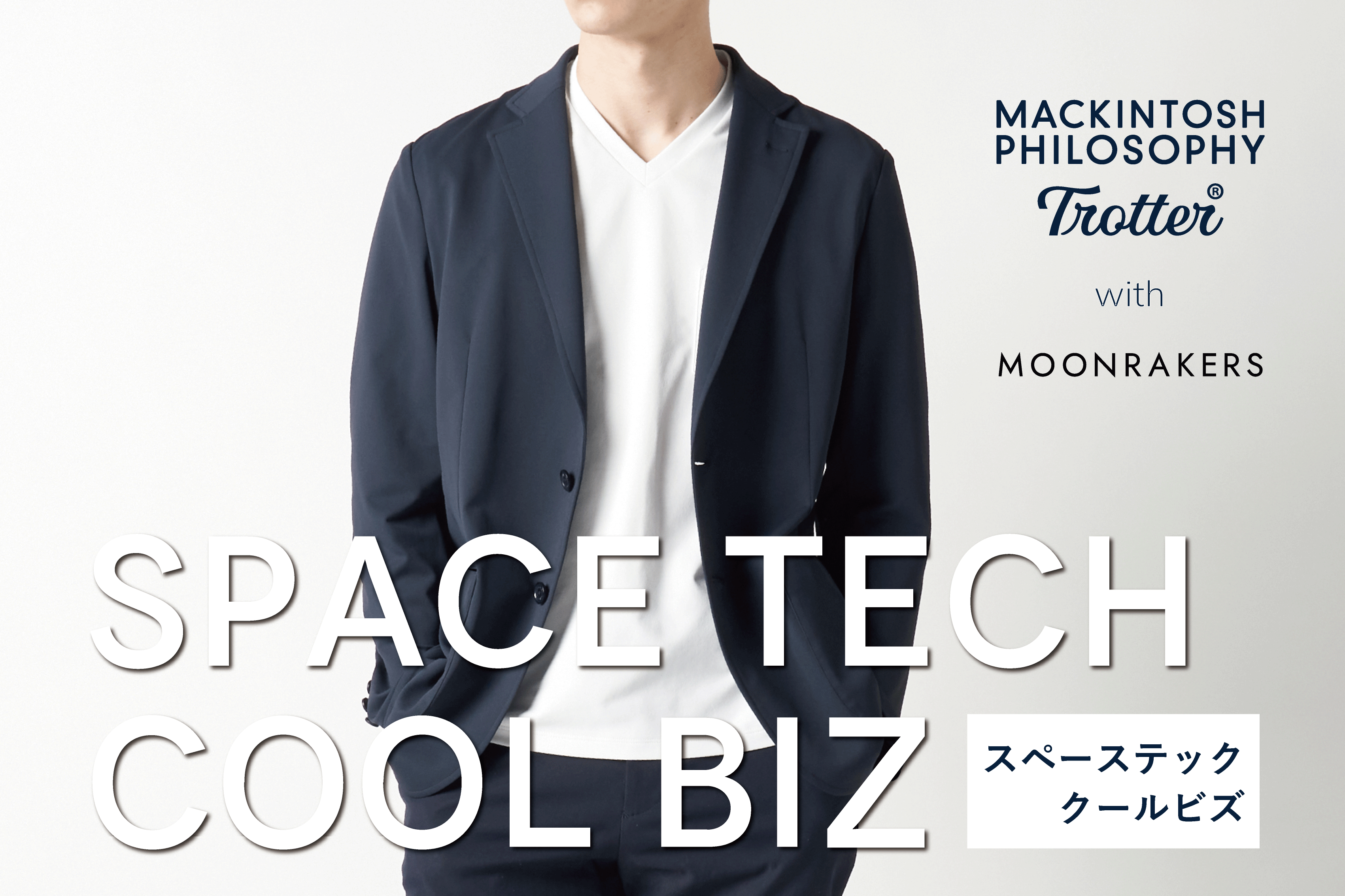 その日本が誇る最新の先端素材「MOON-TECH®」と、英国発の「マッキントッシュ フィロソフィー」のコラボレーションは、今までにない高い機能性と美しいデザインを融合した、「新時代のスペーステック クールビズ」を生み出しています。