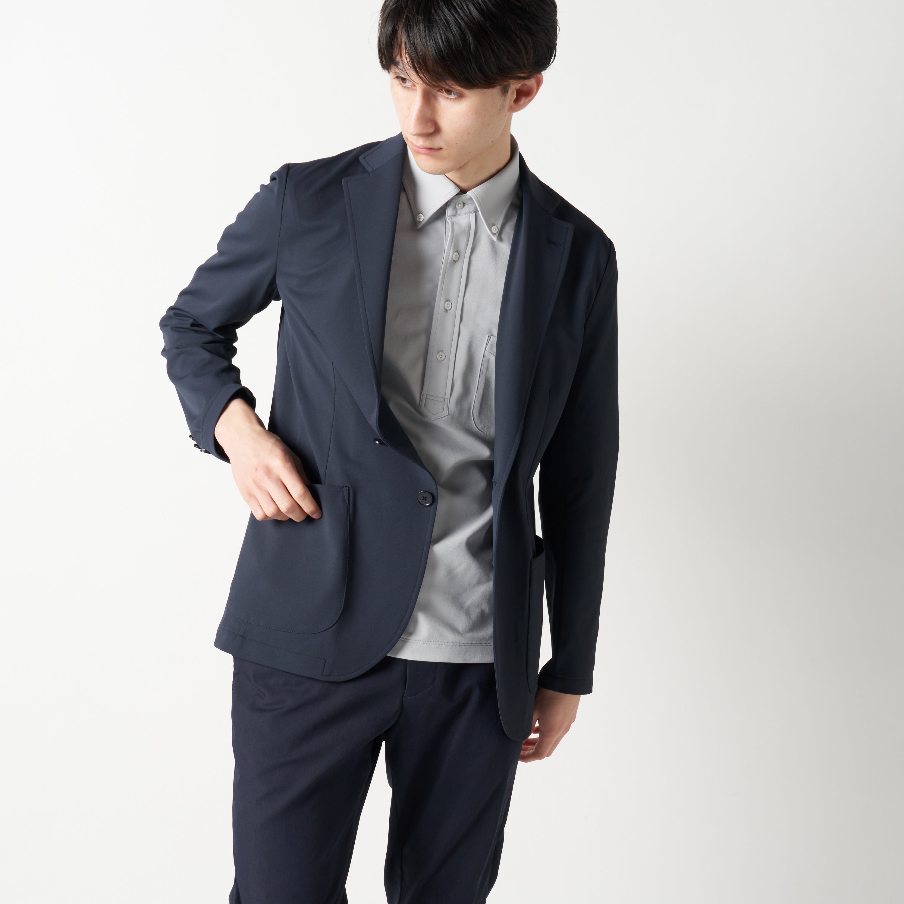 また、ジャケットは着回し力の高いネイビーを用意。基本色のインナーとも相性がよく、好印象なビジネススタイルを演出できます。