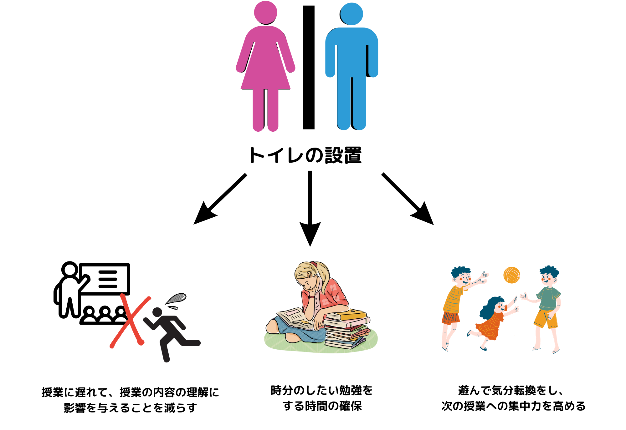十分なトイレの確保は子どもたちがよりよい学校生活を送るためには必要不可欠です。