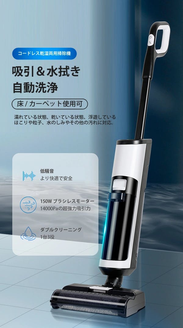 便利な水ぶき、吸引、自動洗浄が出来る楽する自動モップ一度お試しください。