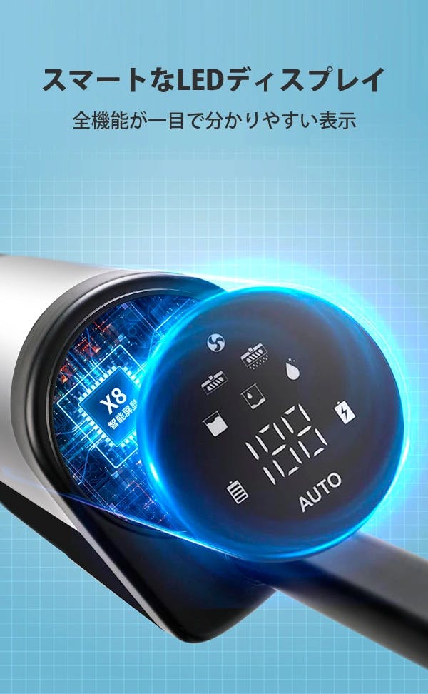 IZELL-X8には吸引力14000Paを発揮する150wブラシレスモーターが搭載されている為、スマートに強力吸引してくれます。