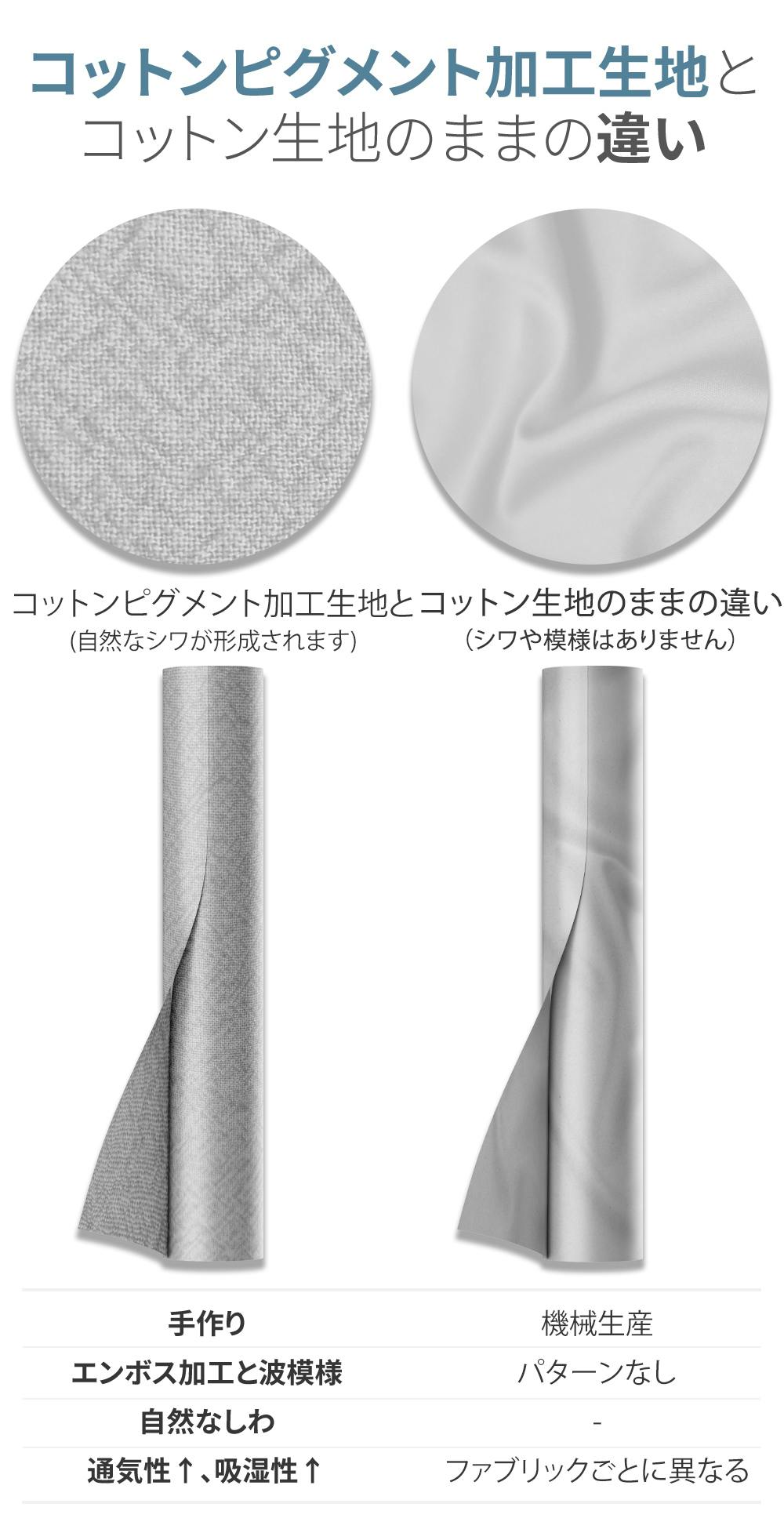 さらにコットン素材を高温で数回煮沸し、手でのばすというかなり手間のかかる特殊な技術、ピグメントバイオウォッシュ加工を施し素晴らしい高級感と肌触りの良さを高めています。