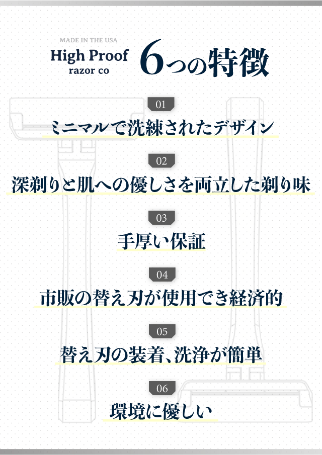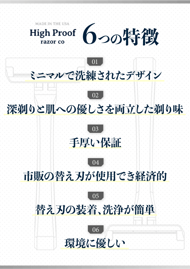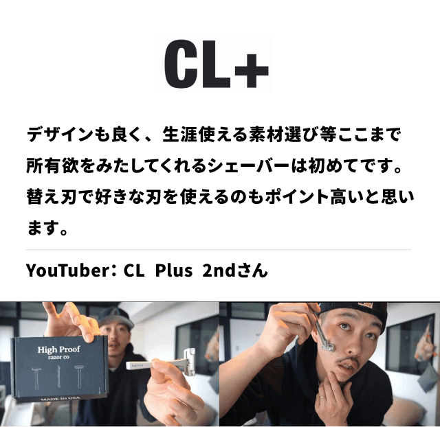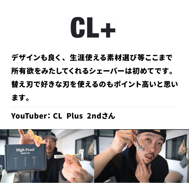 アメリカでデザイン、製造されている高品質な【High Proof Razor】をお使いいただく皆様に喜んでいただけるようチーム一同協力して対応致しますので、応援よろしくお願いいたします。