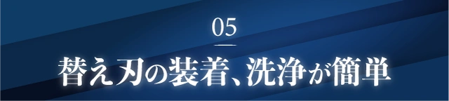 洗う時は水で流すだけ。ヘッドを簡単に取り外せるため、ヘッドと刃の間に毛なども残らず衛生的。いつでも清潔に気持ちよく使用できます。
