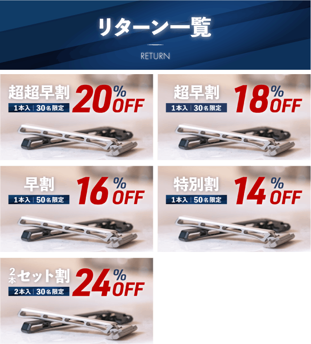※ リターン品の配送が完了するまでSANGO Trading合同会社はHigh Proof Razor社の日本における独占販売権を有する正規代理店です。輸入並行品が発生する可能性がございますが、並行輸入品には正規代理店による製品サポートを受けることができません。 また、正規代理店を通じて購入することで、日本国内での流通に必要な各種認証の取得や、関税の適切な処理が担保されます。