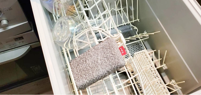 F1F2GOは耐熱温度・耐久性が高いため、煮沸消毒はもちろん食洗機で洗うことができます。洗ったあとのスポンジはまるで新品のような仕上がり!