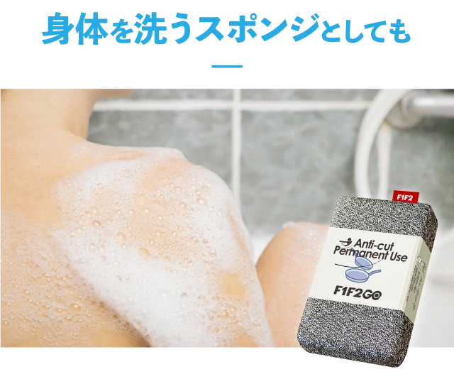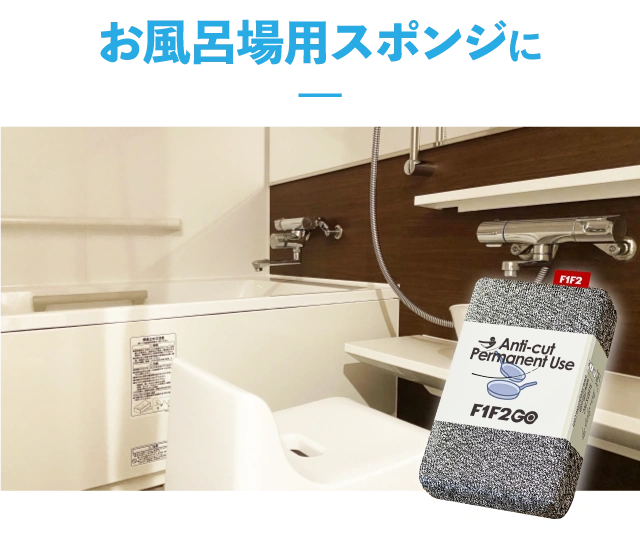 特殊繊維を使ったF1F2GOスポンジは食器用だけでなく、様々な場所で利用可能です。