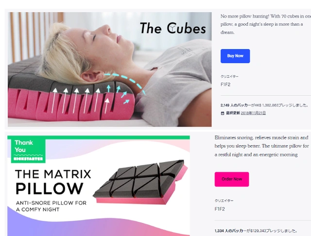 下記は過去実績です。特殊な構造で圧力を分散する枕は約3,500名の方々から好評をいただいています。