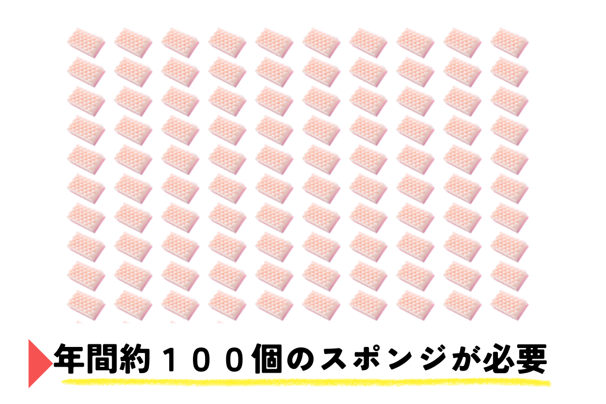 1年間使い捨てスポンジを使ったとすると、約100個ものスポンジを購入していることになります。