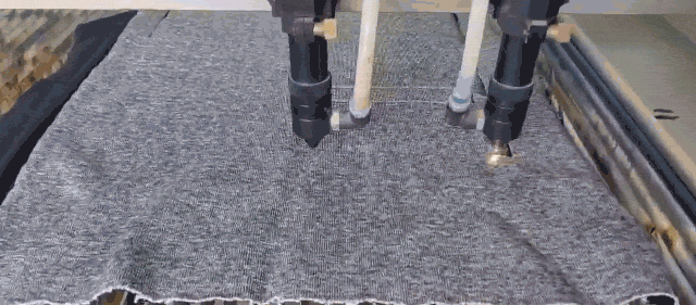 ですが、家計・環境の両方に貢献できる商品になると信じ、F1F2GOをついに完成することができました。特殊繊維の強度が高く通常の裁断機では切れないため、専用のレーザーで生地をカットしています。