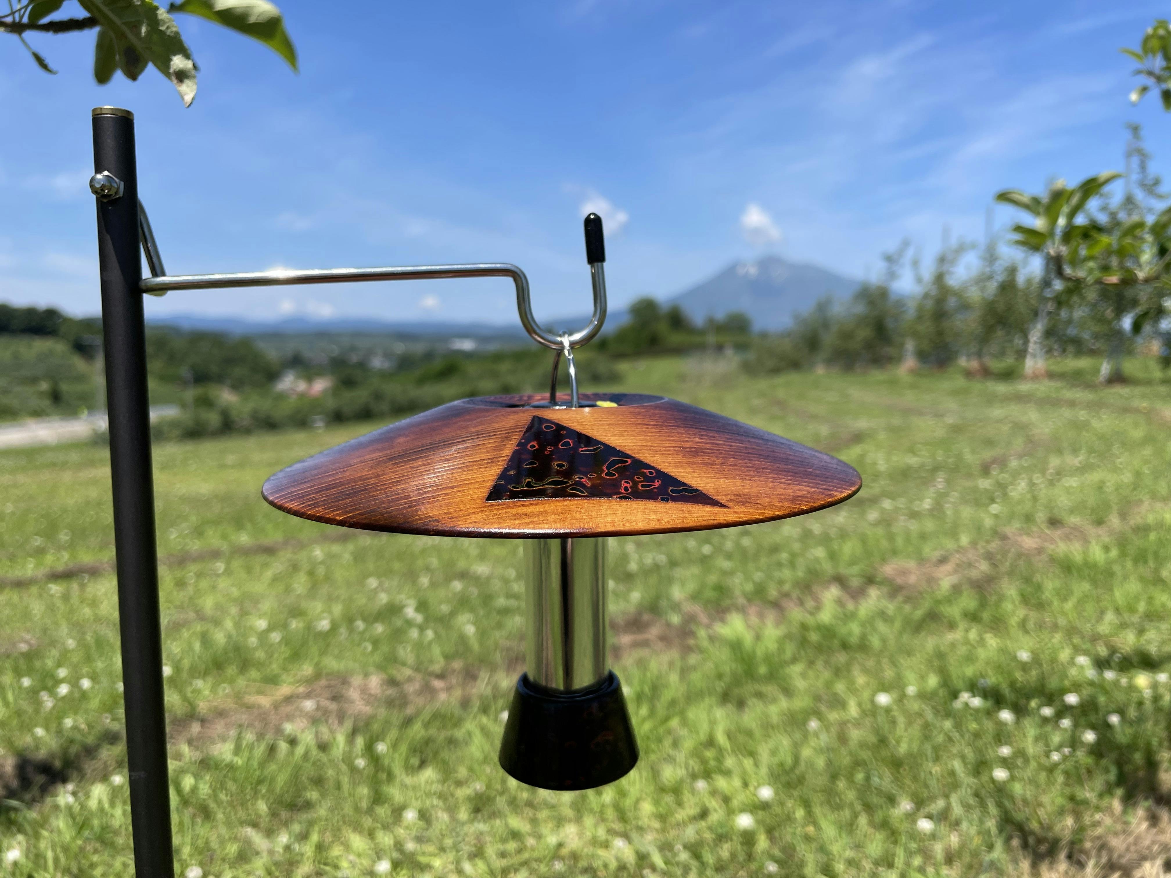 アウトドア用コンパクトLEDランタンのシェード「こうもり」とエンドキャップ「どんず」