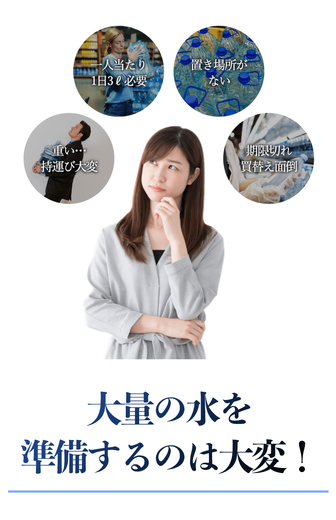 重いペットボトルの水を大量に購入したり、置き場所を確保したりせずとも災害に備えられるのは嬉しいポイントです。