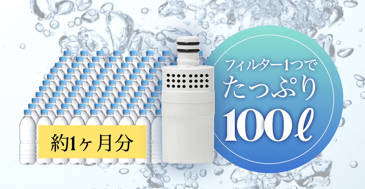 RIPURIのProフィルターは、1つで100リットル(500mlペットボトル200本分)を浄水することが可能。