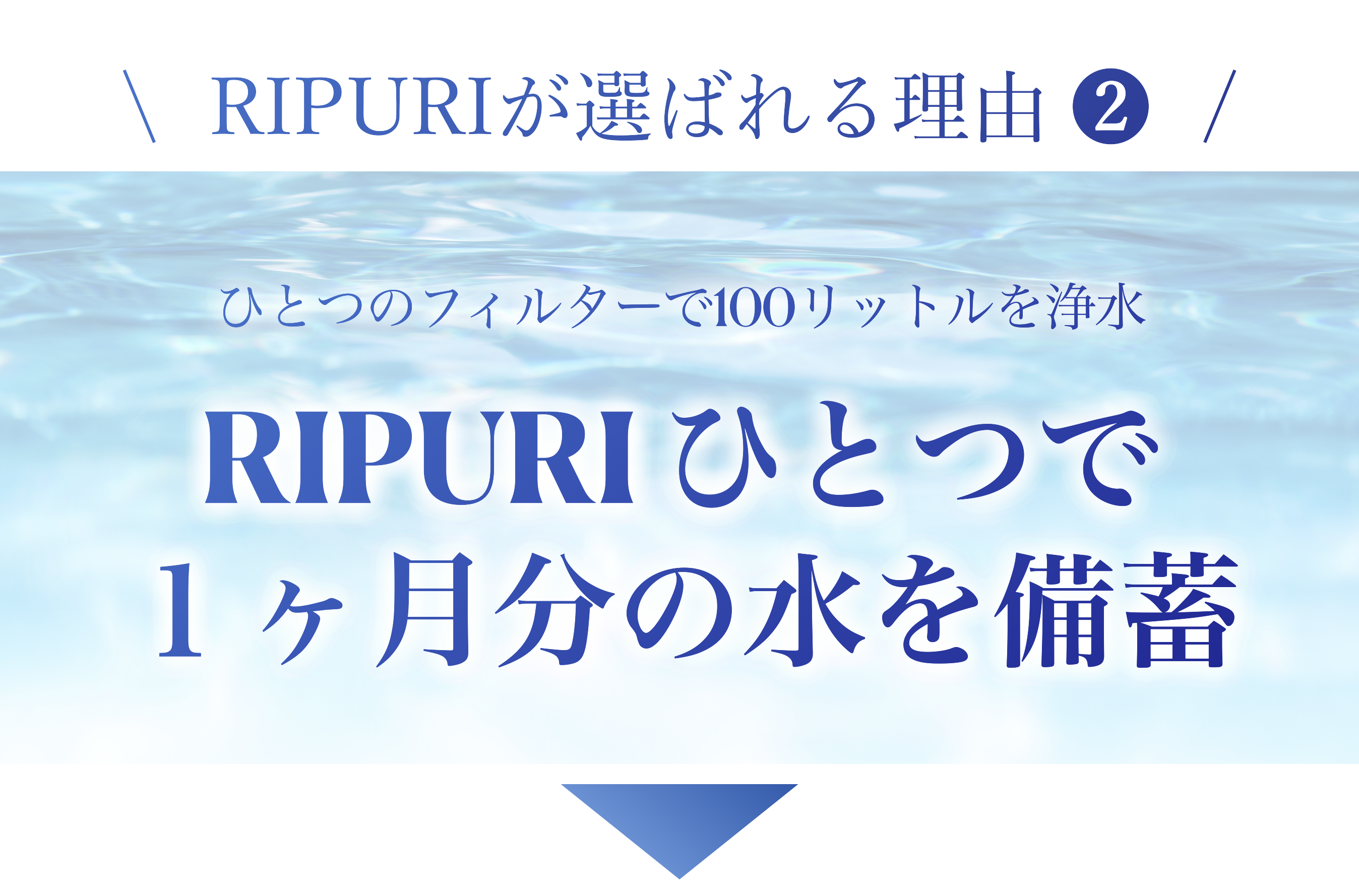 つまり、Proフィルター付きのRIPURIが1つあれば、約1ヶ月分の水を備蓄できるのです。
