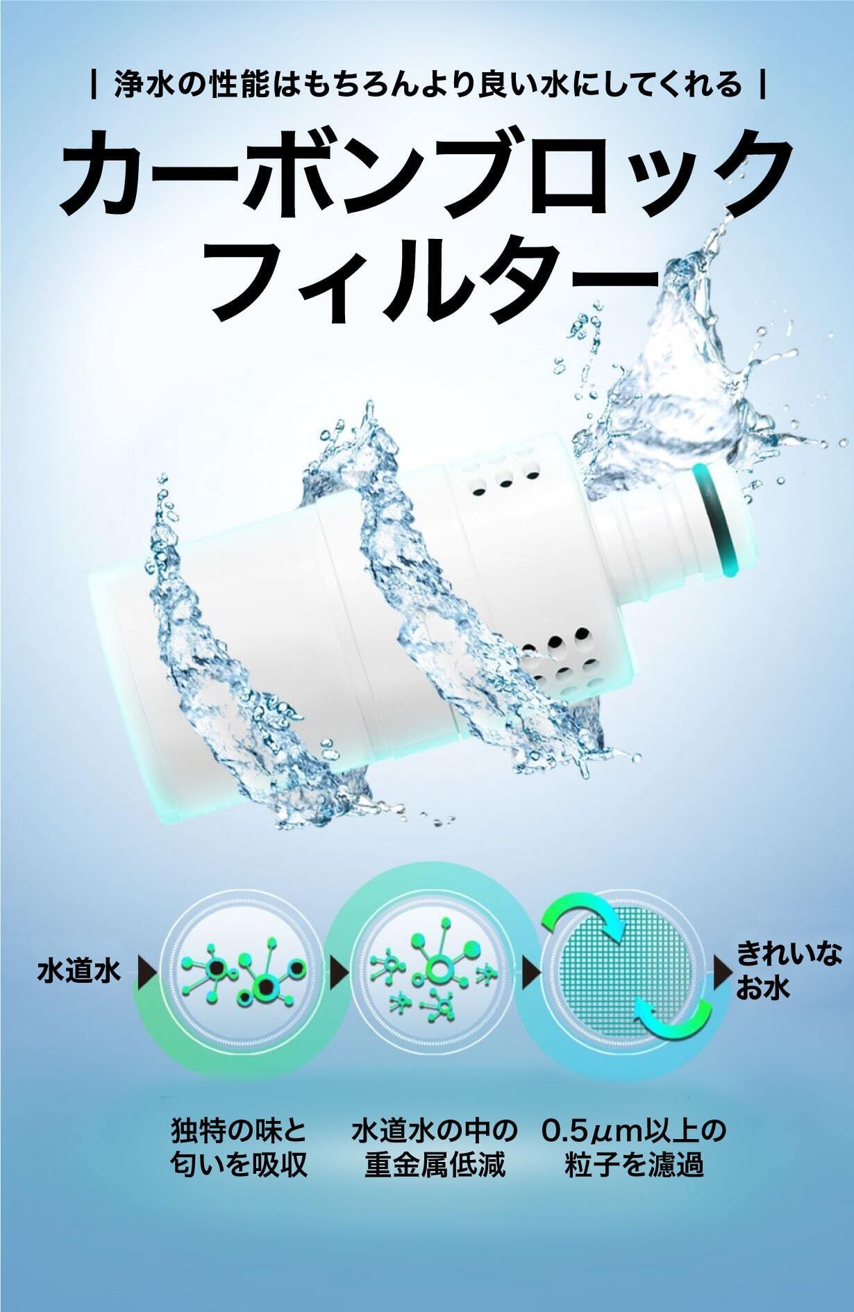 ノズルにクラシックフィルターを取り付ければ、水道水独特の匂いやえぐみの原因である塩素や重金属を除去してくれます。
