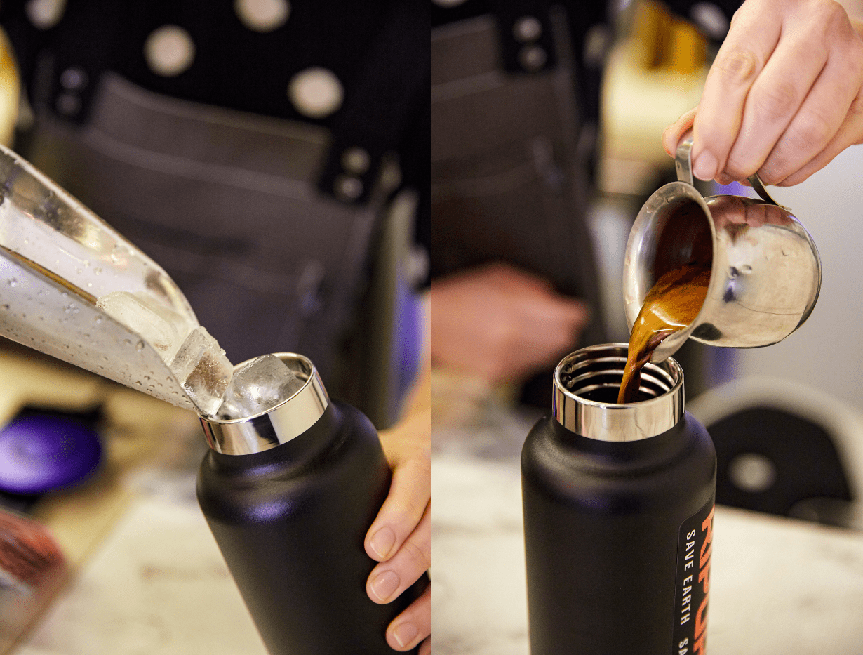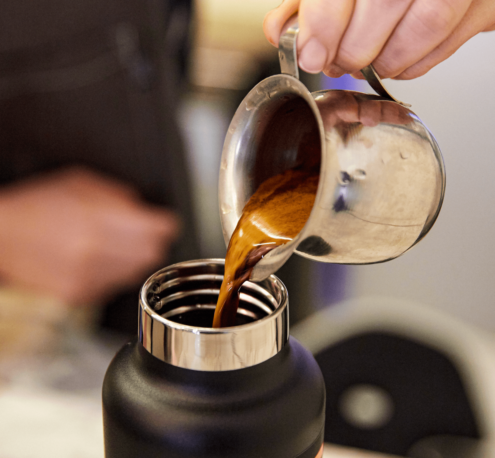 飲み物をボトルにそそぎ、水筒キャップを取り付けます。