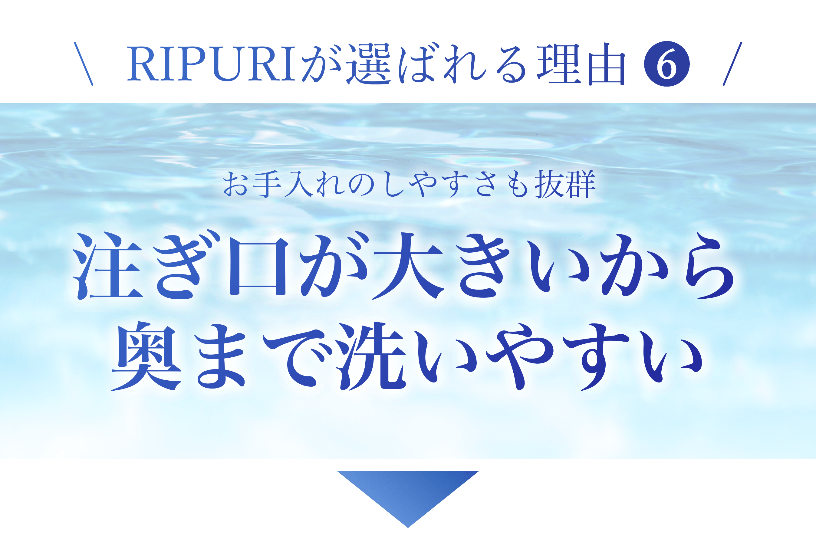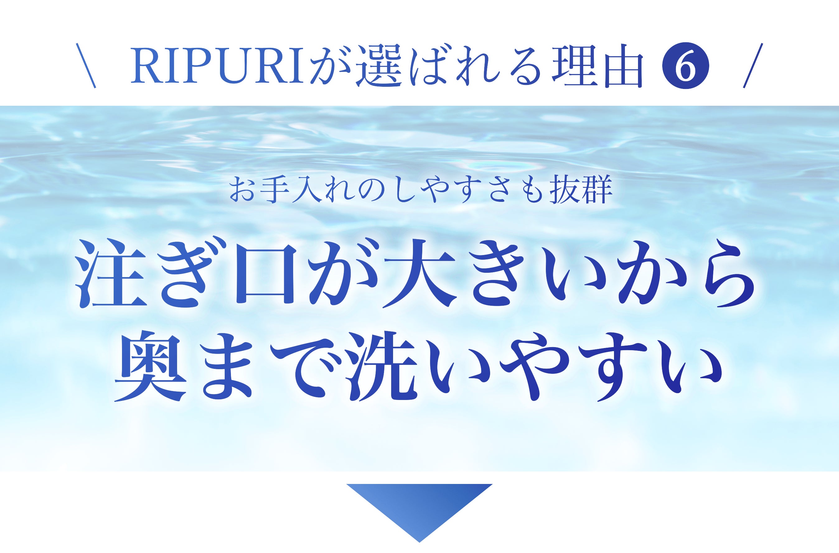RIPURIのボトル口径は約5cmと、一般サイズの1.35倍も大きいため、ボトルの中まで洗いやすいです。