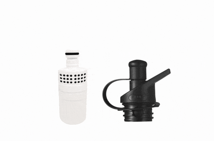 フィルターをつけてそのまま飲めるスポーツノズルと、水筒のフタになるスクリューキャップ、2種類のフタもセットにするので、使用用途に応じてカスタマイズが可能です。