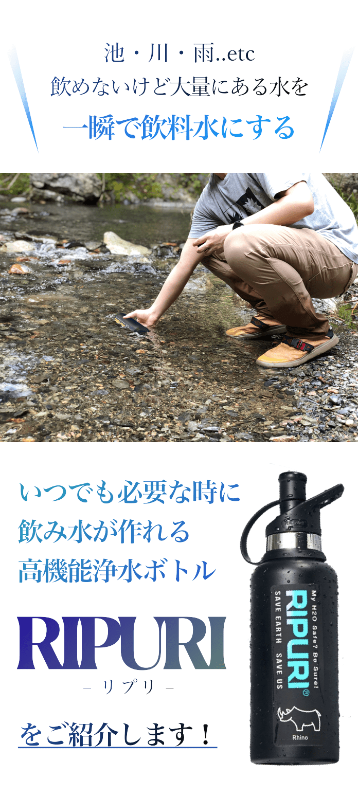 RIPURIは防災用としても、普段使いとしても活躍してくれる便利な浄水ボトルです。