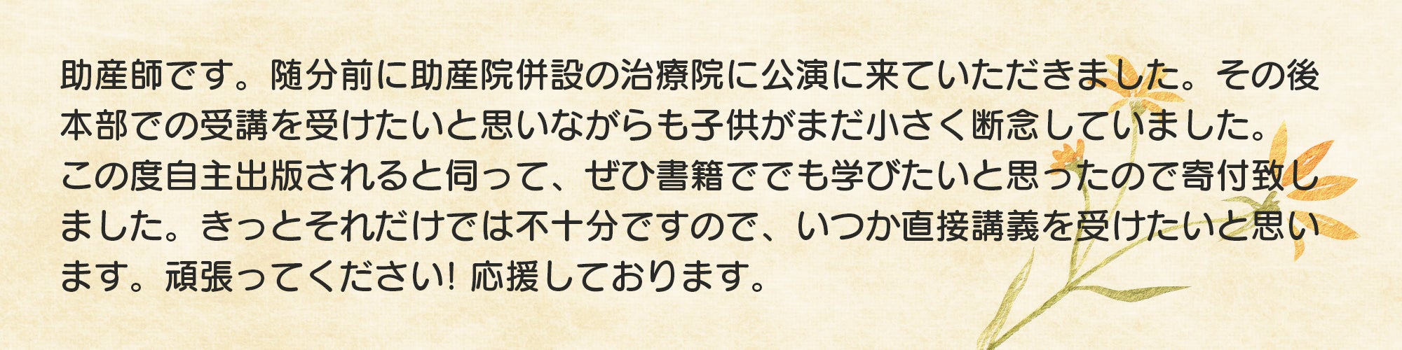 専門書であり自費出版のため、出版費用がかさみます。出版費用は用意いたしましたが、この費用補填の為にNPO法人日本妊産婦整体協会の活動が縮小するのであれば、本末転倒です。日本各地で開催するセミナーは、日本中の妊産婦さんのための協会の活動には不可欠です。また、要望の多い乳幼児の頭蓋骨矯正についての書籍も、必要になるだろうと考えています。ご支援いただいたお金で、出版費用の補填を行い、次の活動につなげたいのです。