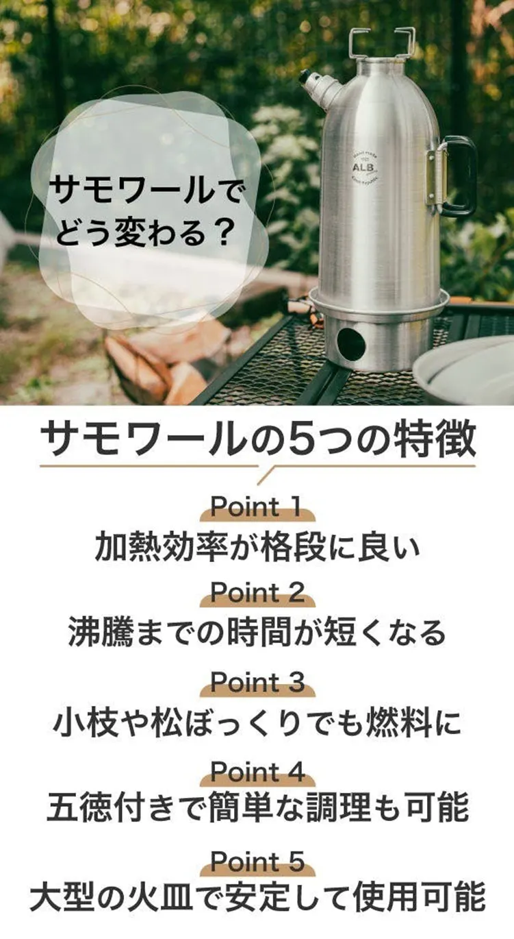 お湯がすぐに沸くサモワールは、あなたのアウトドア活動をより快適にしてくれるでしょう。