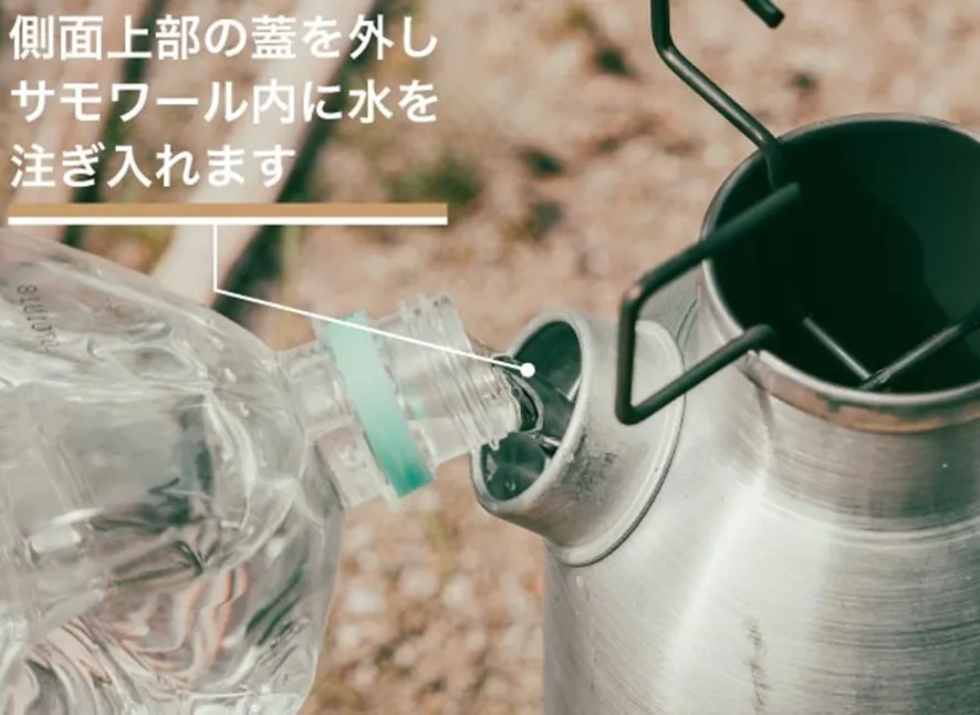 サモワールはコンパクトな設計ゆえに、屋外に落ちている不要な小枝や松ぼっくり等を燃やすことで、簡単に湯を沸かせます。