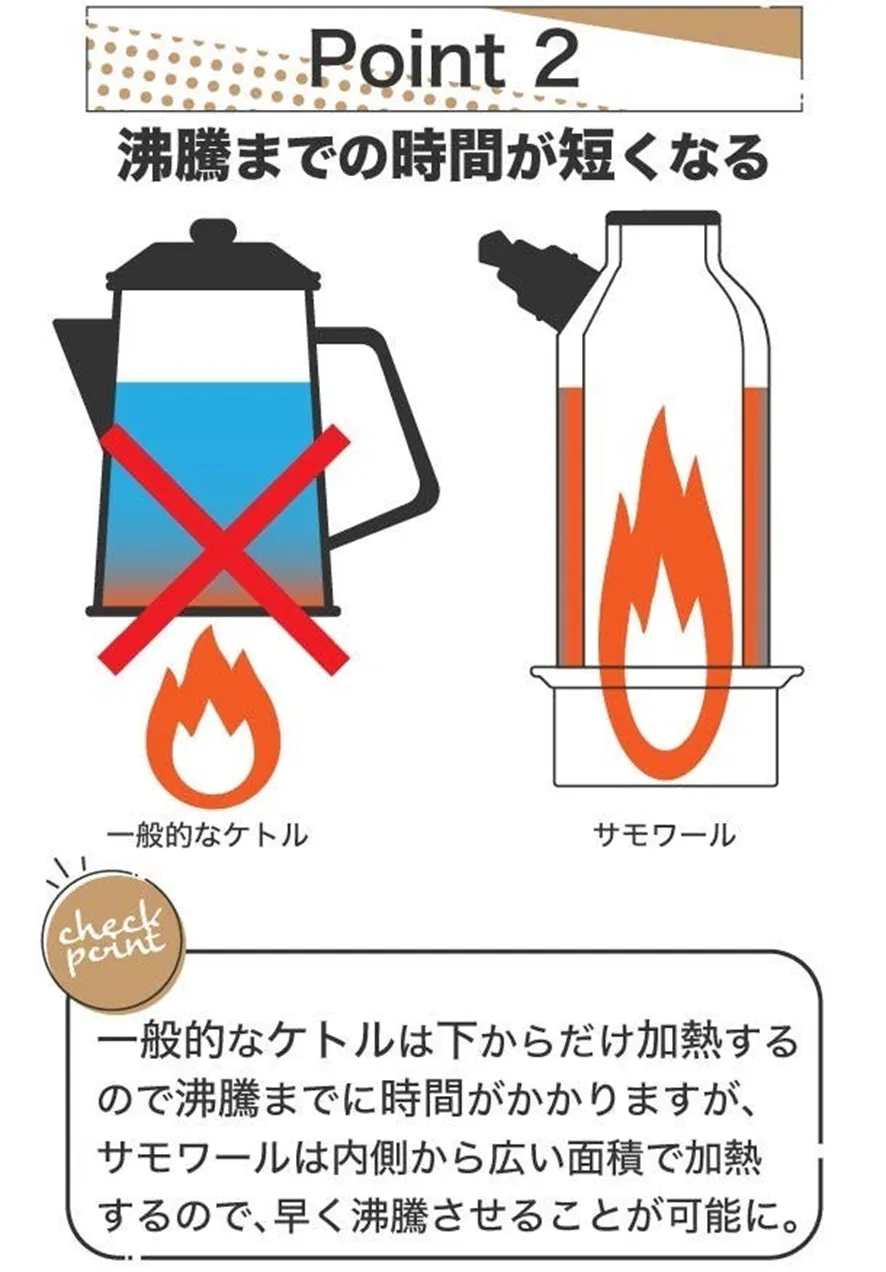 サモワールと一般のケトルとの違いとして挙げられるのが、圧倒的な加熱効率の良さ。