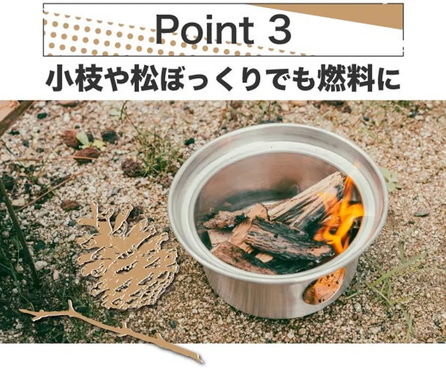 もちろん市販の燃料を使ったり、コンロの火を使ったりすることも可能。