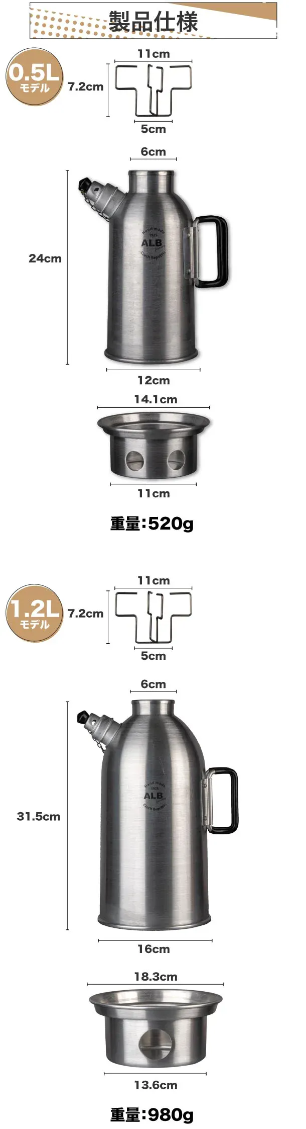 サモワールは用途に合わせて選べるよう2つのサイズをご用意しております。
