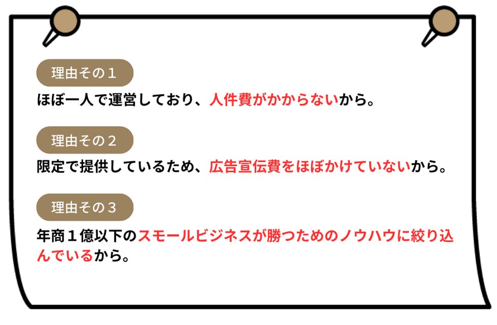 なぜ、これほど安く提供できるかというと、3つの理由があります。