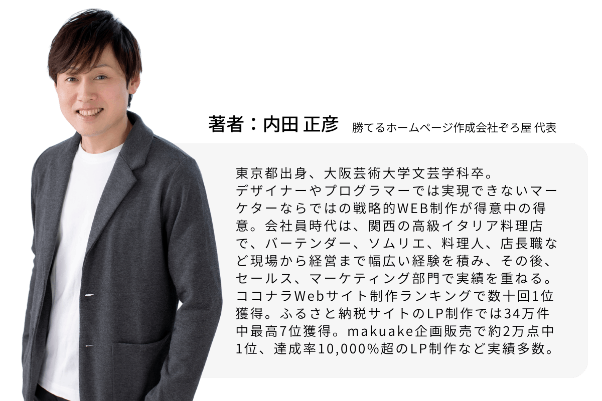この講座は、あまりに秘匿性が高いので、これまで大々的にしてきませんでした。そのため、まだ実践者が多くありません。そこで、書籍出版を機に、モニタ体験を募集することにしました。【勝てるホームページの作り方講座】を学んでいただき、その体験談をインタビューさせていただくこと(※顔出しOK)を条件として、通常29万8000円で提供しているプログラムを、9万9800円でお試しいただきたいと思います。もちろん、書籍もお付けします。ただし、10名様を上限とさせてください。