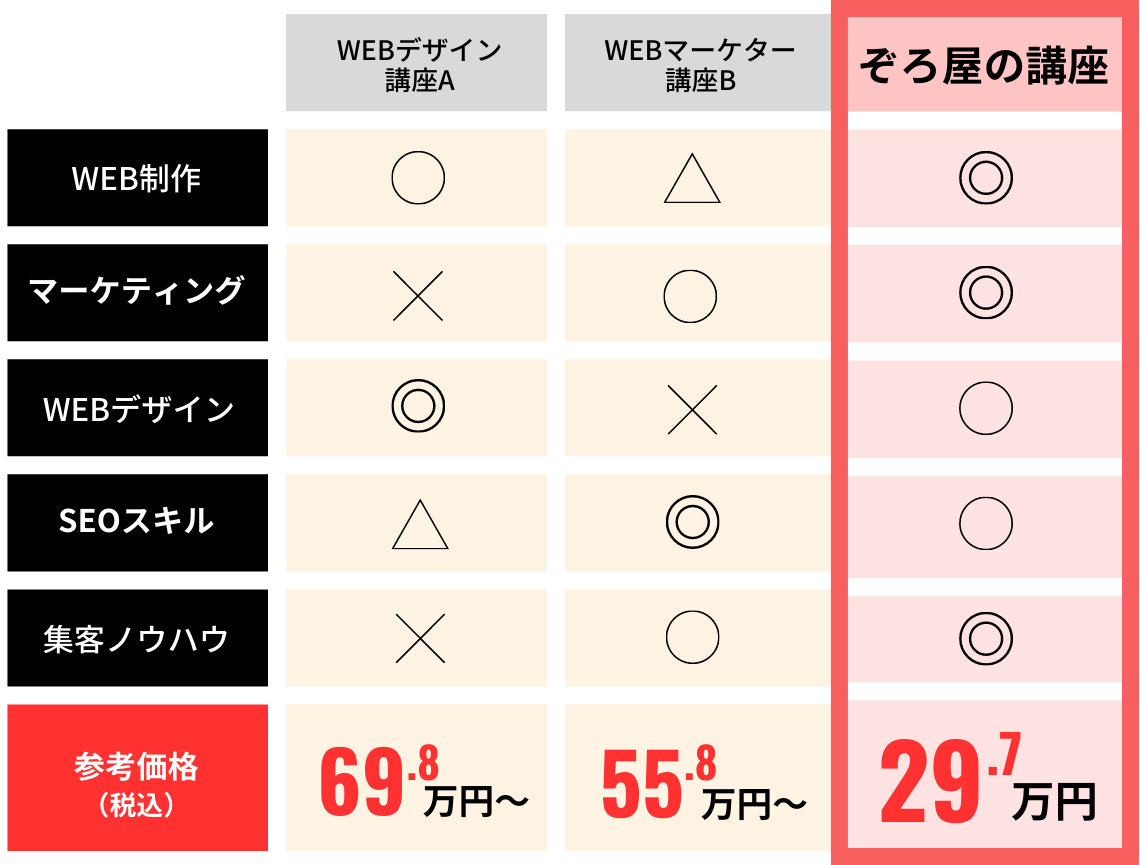 ざっくりと他のWEB講座との違いを表にすると、、、