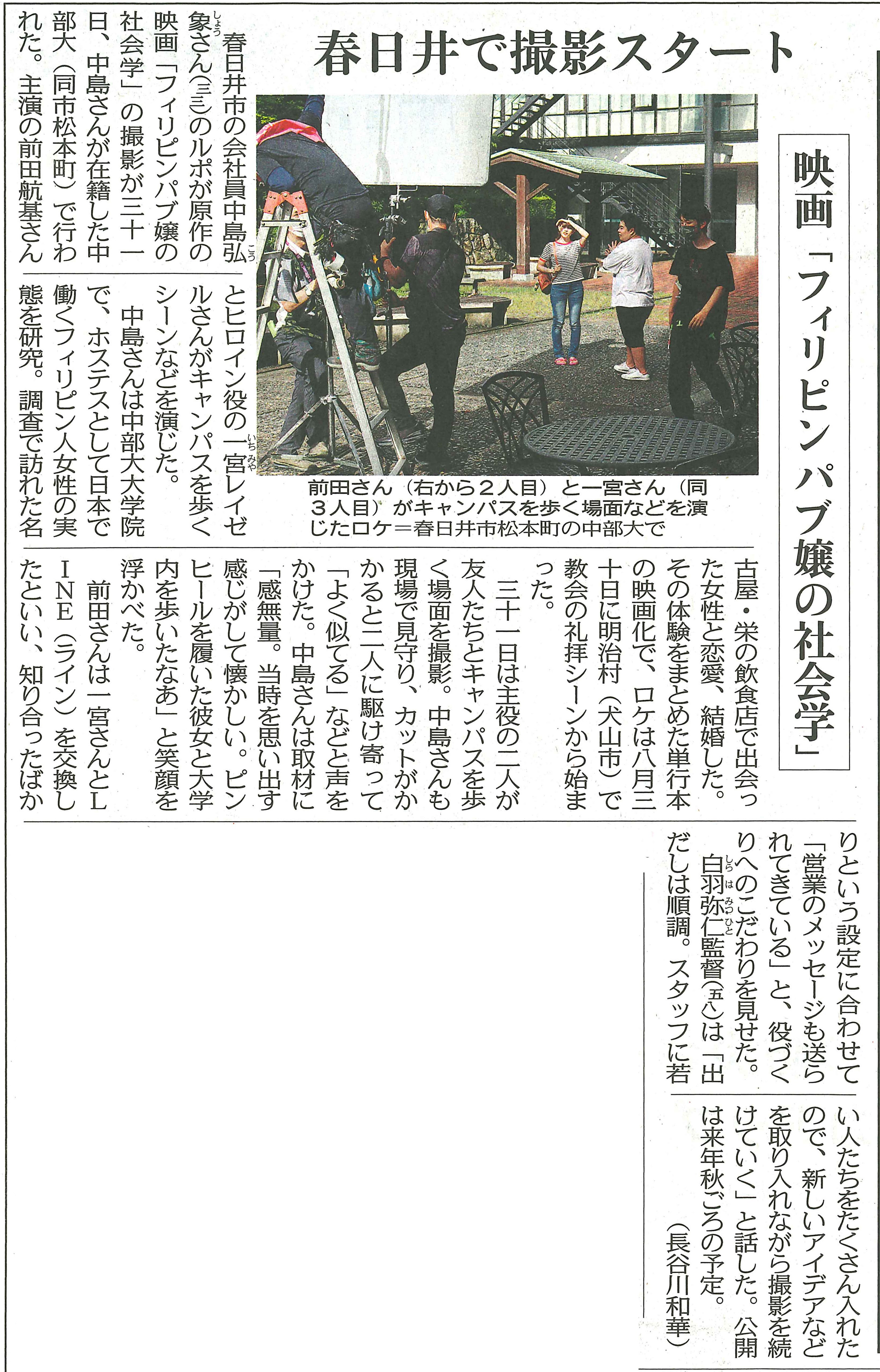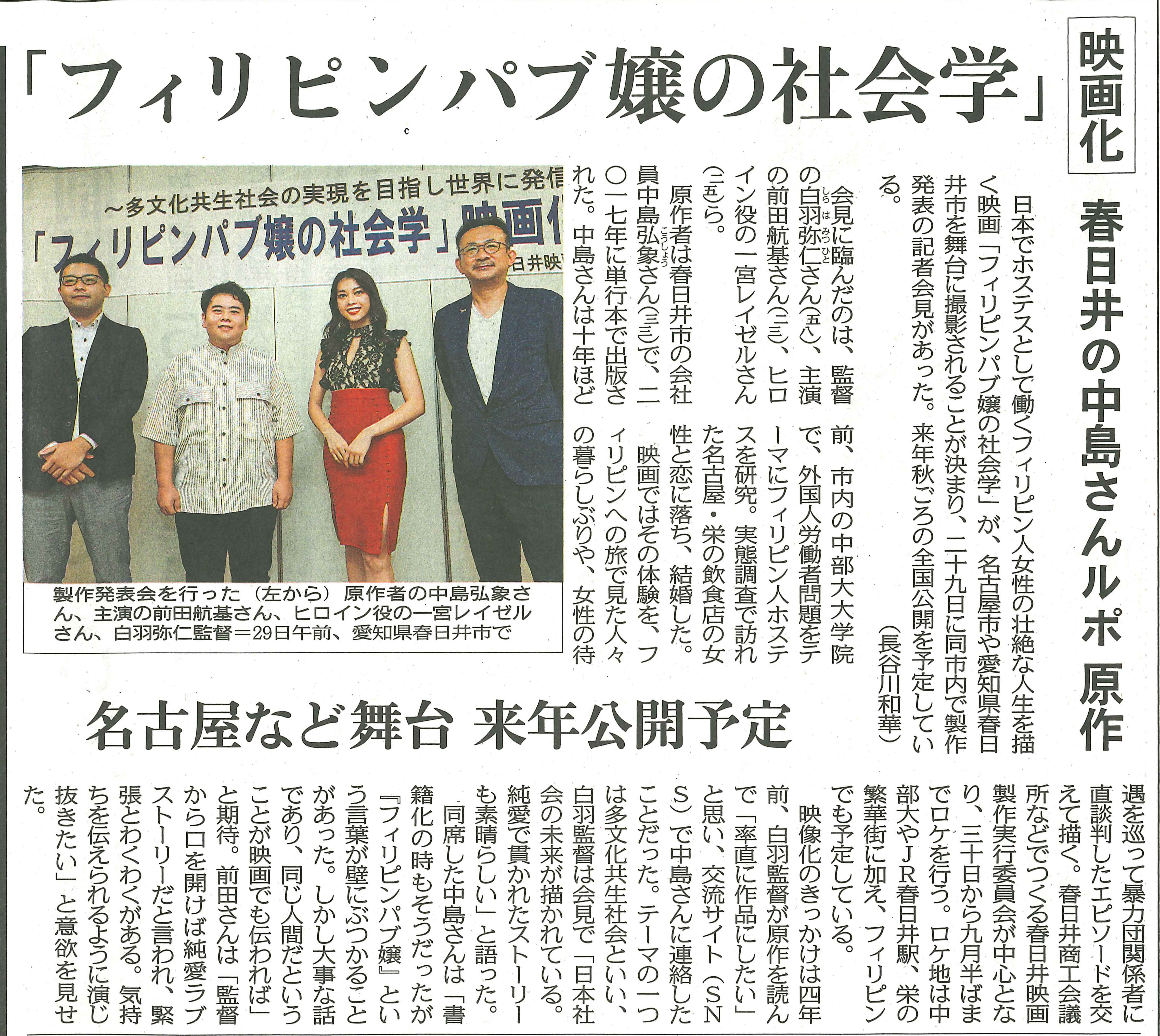 この映画には原作があります。原作者の中島弘象さんは愛知県春日井市で生まれ育ち、市内にある大学の大学院在学中に国際関係学を専攻されていました。修士論文のテーマとして、在日フィリンピン人女性の現状を調べていくうちにご自身が体験されたことを、ルポルタージュという形で2017年2月に『フィリピンパブ嬢の社会学』(新潮新書)として出版されました。