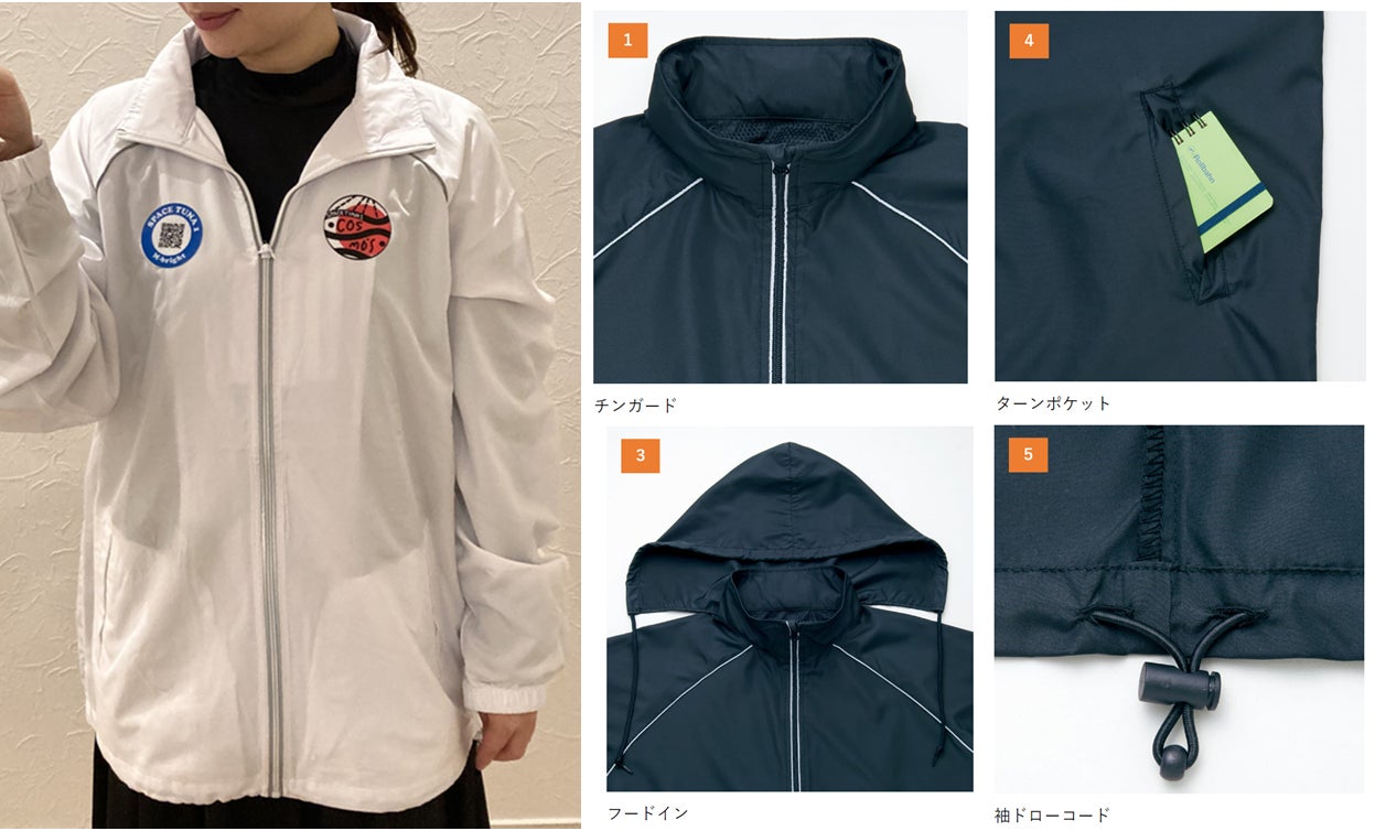 素材/表地:240Tマイクロタフタ 平織り ポリエステル100%裏地:メッシュ(肩裏)◎ファスナー/コイル(スライダー/金属)□フードイン □反射パイピング □背中ベンチレーション(マジックテープ付)□両脇ターンポケット □衿/チンガード付 □袖口/ゴム仕様□裾/ドローコード付(ストッパー付) □ペン差し付(内側)【カラー】ホワイト、ブラック、ネイビー、レッド、ブルー、イエロー【サイズ】SS、S、M、L、LL、3L