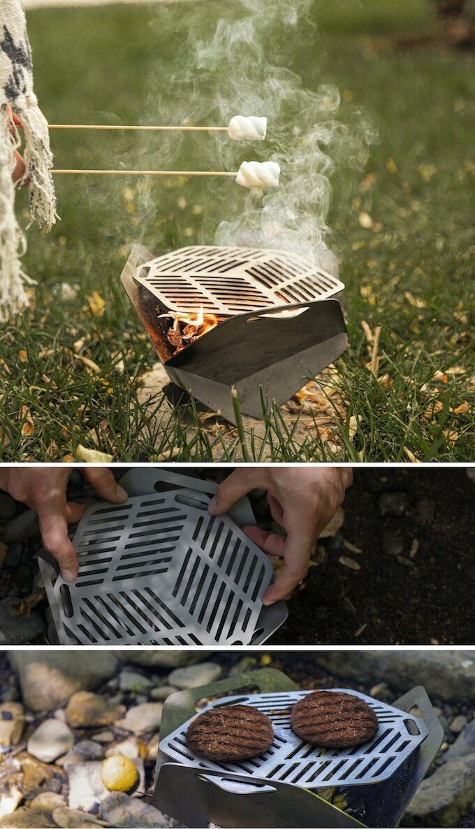 PACOFIREは、わずか4つのパーツで構成され、組み立ては数秒で完了。あっという間に、自然の中で美味しいグリル料理を楽しむ準備が整います。