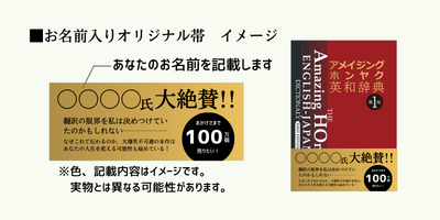 ・お礼(結果報告)メール/「AHO英和辞典」2点/ゲームマーケット2023春ブースにて協賛クレジット掲載/お名前入りオリジナル帯