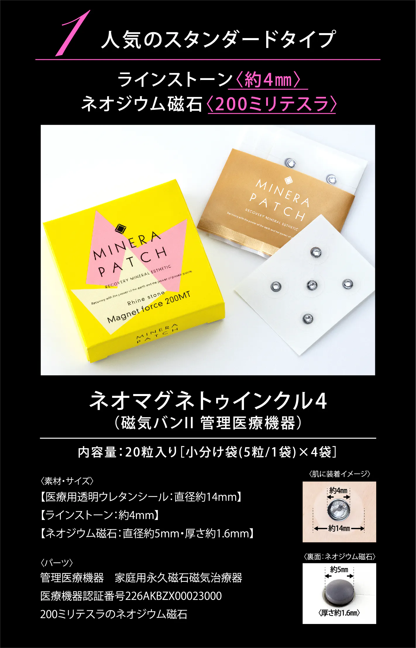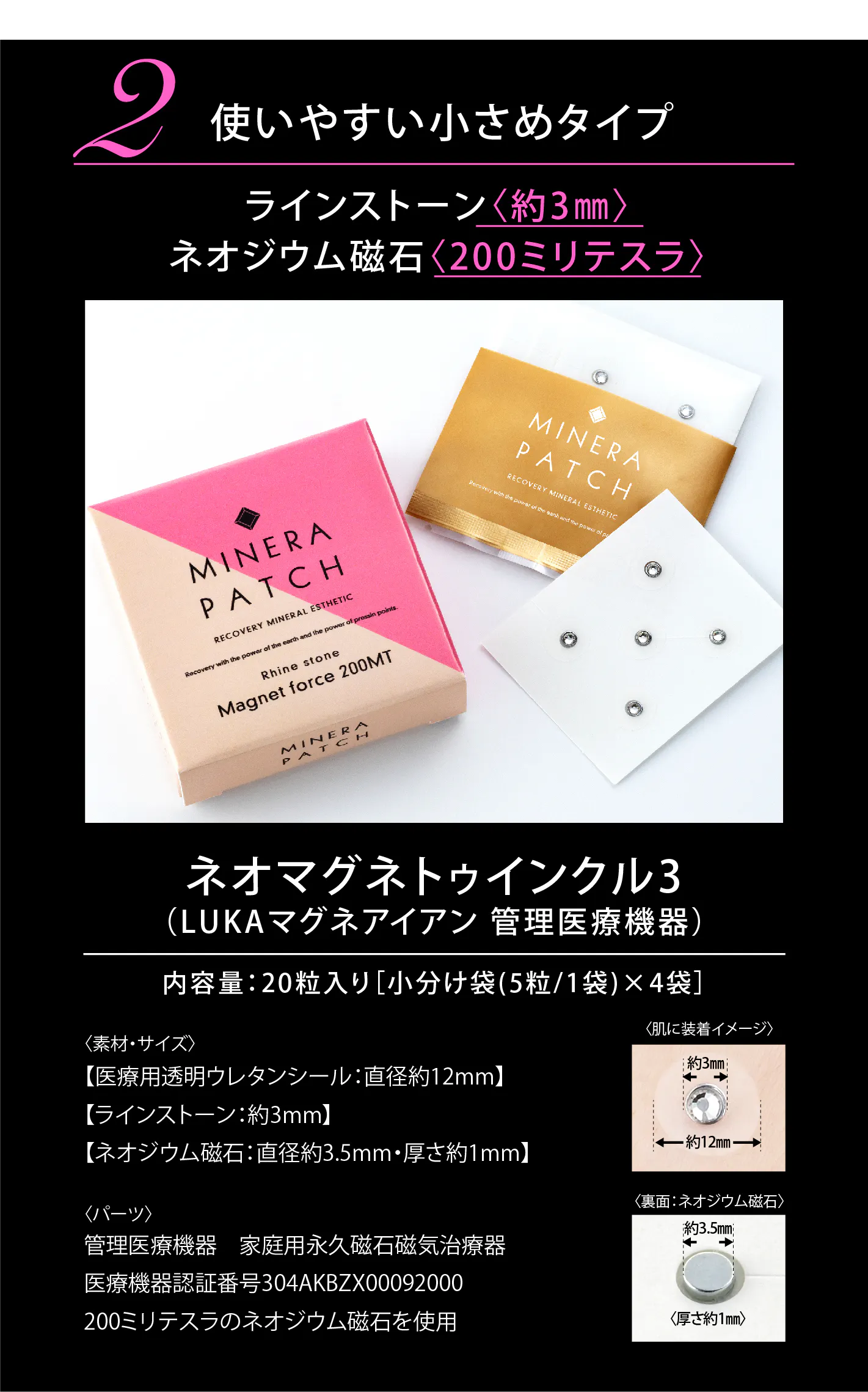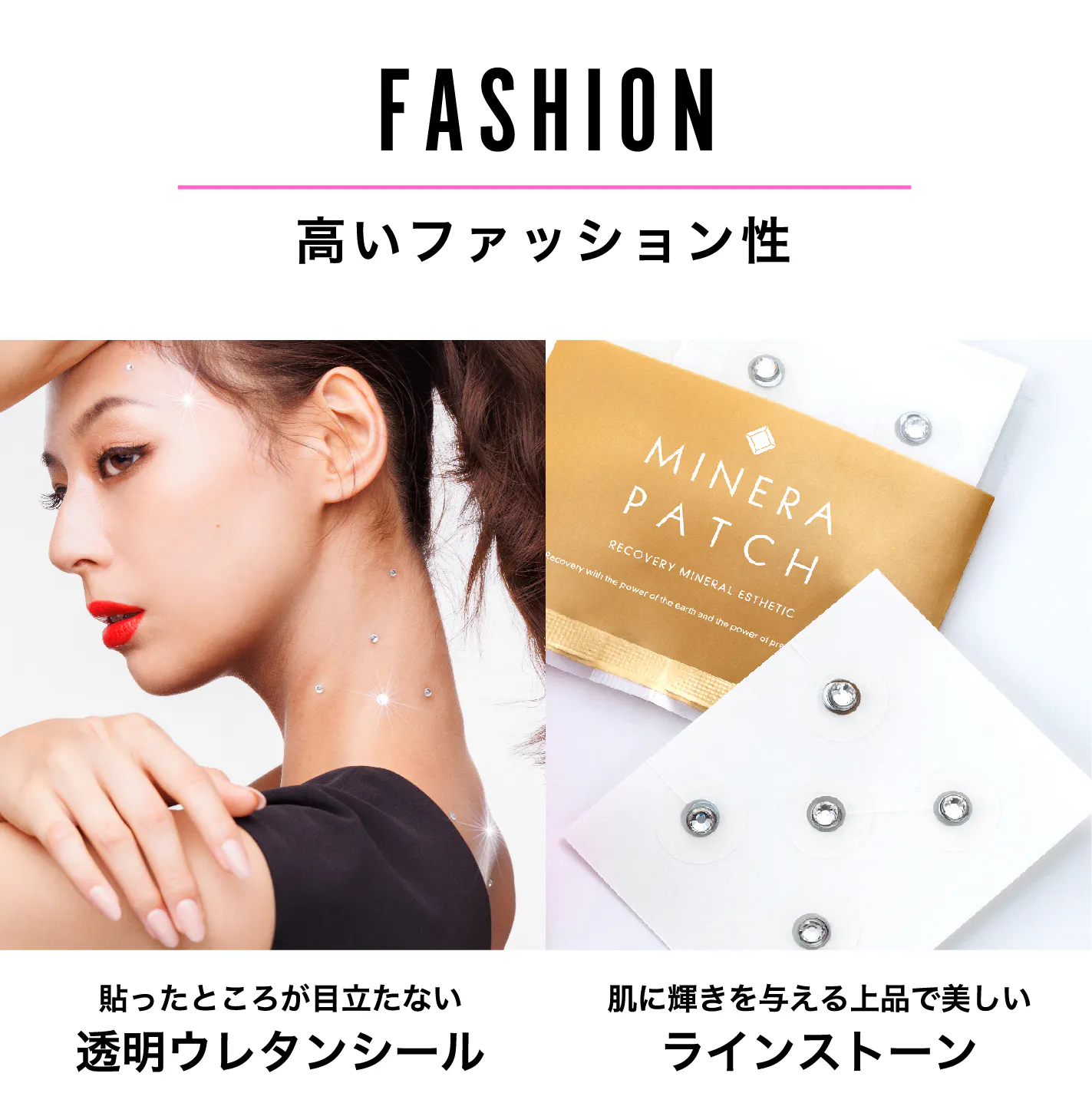 創業28 周年を迎えたストーンマーケットが、この度、健康にもファッション性にもこだわった待望の新商品『MINERA PATCH(ミネラパッチ)』を販売します。『MINERA PATCH』は磁気と天然石を組み合わせた磁気治療器で、素肌に直接貼るだけで首や肩のコリや血行不良など、多くの女性が抱えるトラブルへの解消が見込めます。
