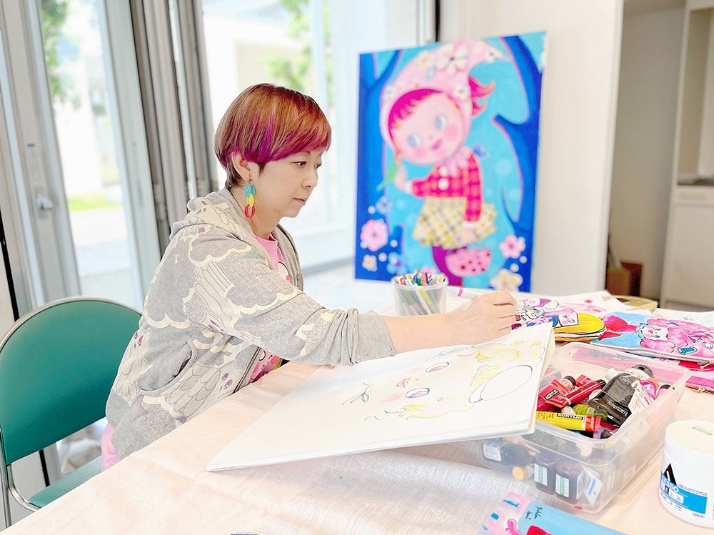 それで生まれたのがgirlちゃんでした。みんなが自分の中の子どもゴコロを大切にして、もっと自由にやりたい事をやってほしい。girlちゃんの絵の中にはそんな思いが込められています。
