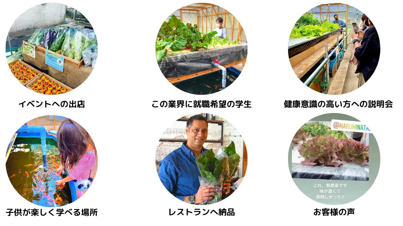 この2年間ではイベント、マルシェでの出店で野菜の販売やレストランへの納品、農場見学では県外からも様々なジャンルの人々がこのアクアポニックス施設に見学に来て頂きました。