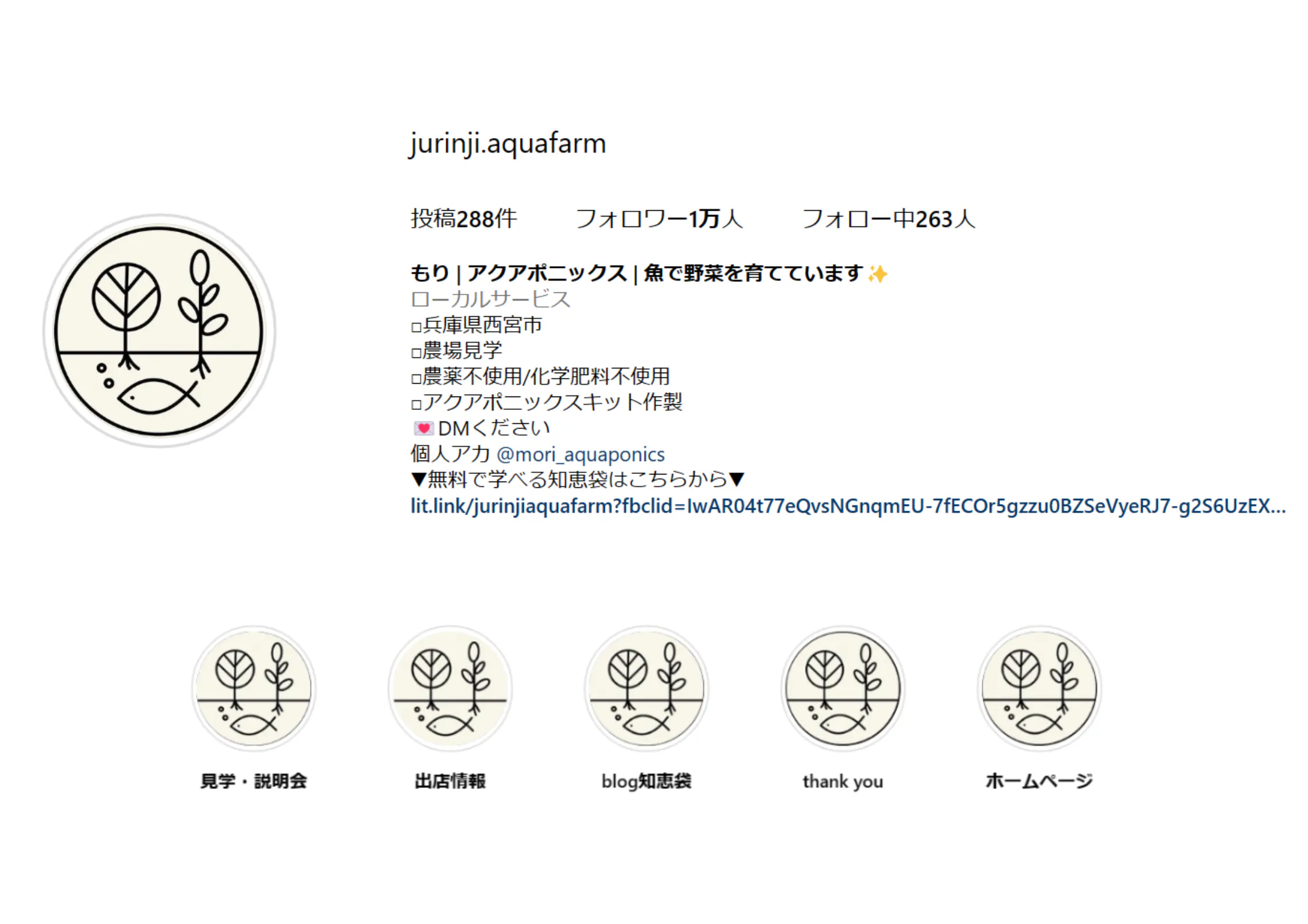 Instagramでは【もり @jurinji.aquafarm 】でアクアポニックスに関する情報を発信しています。