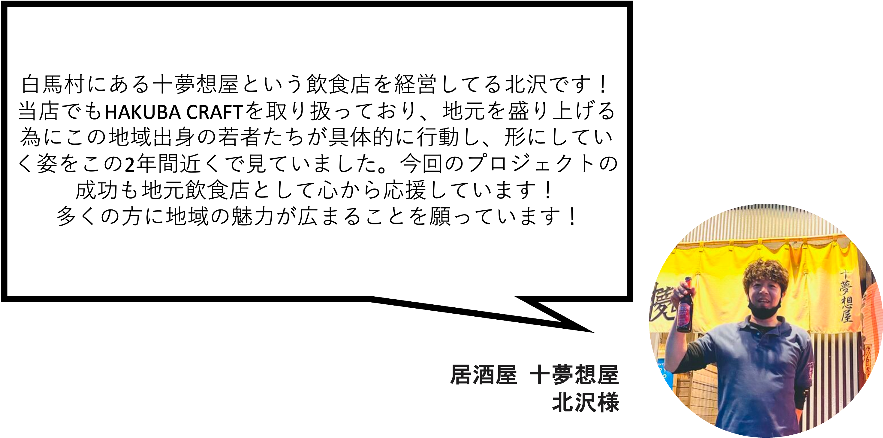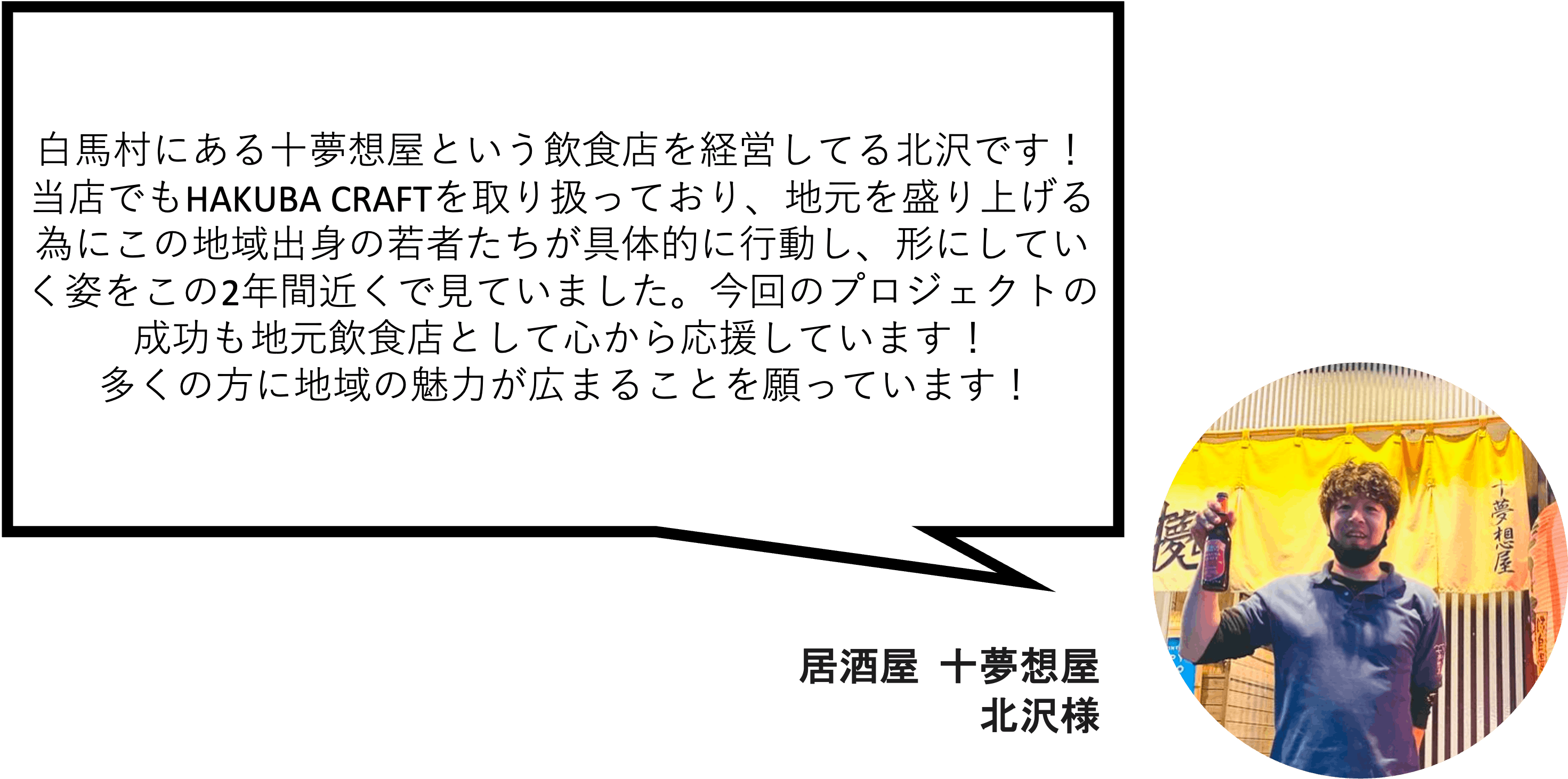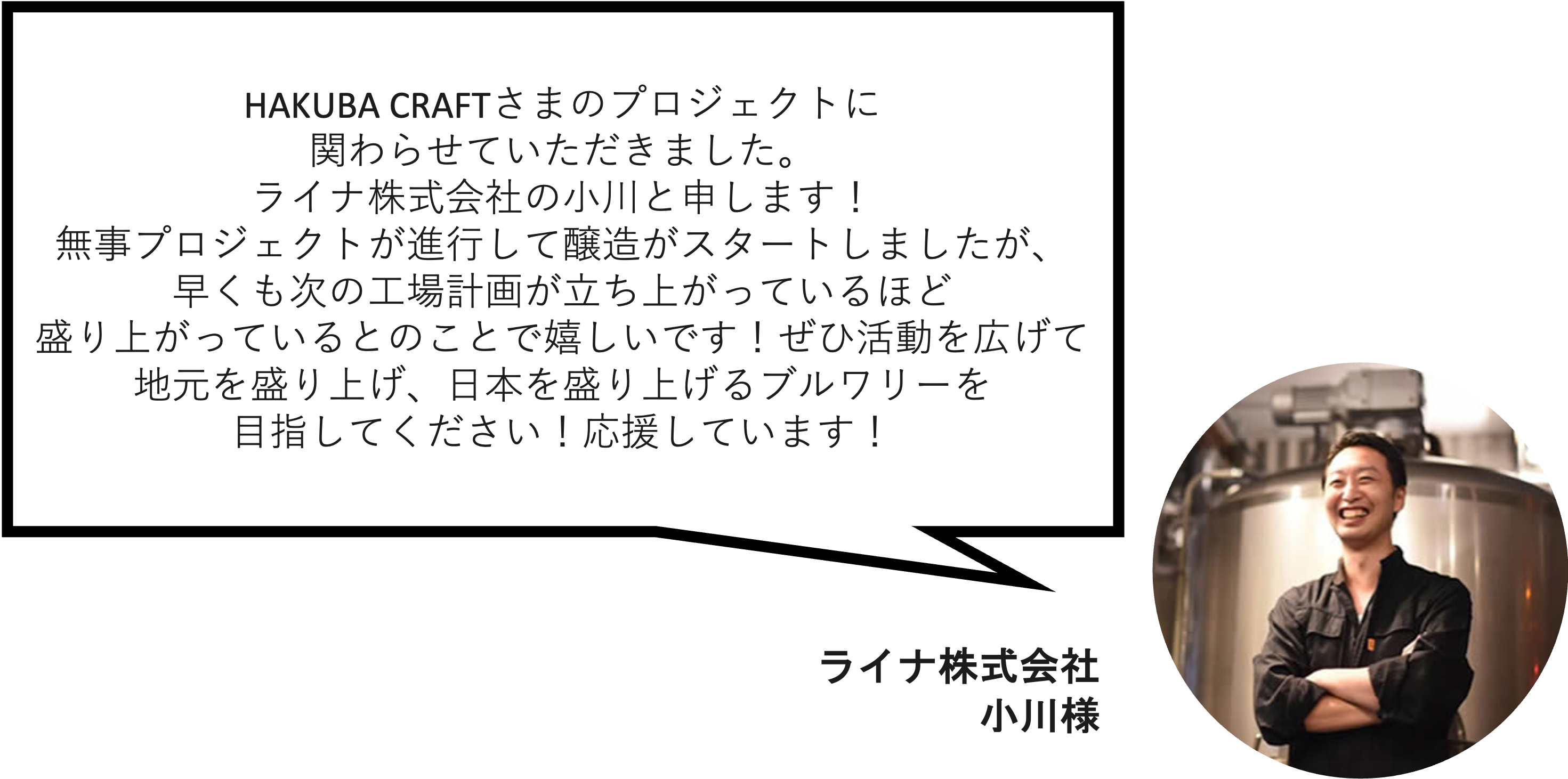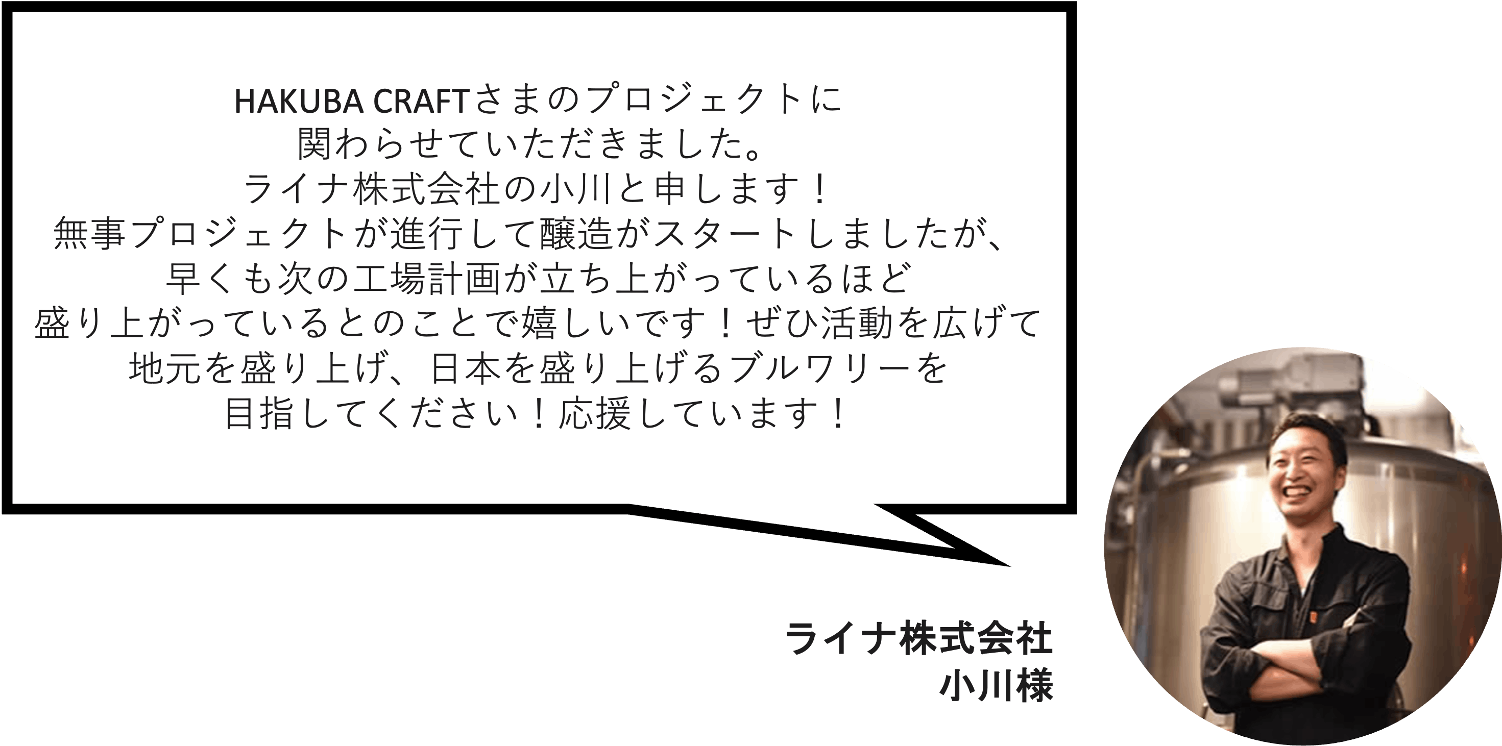 2025/01/01 14:52クラウドファンディングご支援者の皆様新年、あけましておめでとうございます。旧年中は私達の活動を暖かく見守っていただき誠にありがとうございました。新工場建設プロジェクトにつきましては、着々と準備を進めておりして、白馬村内に最有力候補が決まりましたことご報告申し上げます。古くからある建物をリノベーションし、クラフトビールの醸造所として生まれ変わる予定でございます。当初のスケジュールより大きく遅れてしまっており、ご心配おかけしてしまいましたこと誠に申し訳ございません。現在、2025年の春からの施工に向けて設計会社様とお打ち合わせ、醸造機材の選定及び調達を行っております。皆様より頂戴したご支援金額につきましても予定通り缶充填機に充当させていただきます。年末のご報告となりましたが、今後ともHAKUBA CRAFTをどうぞ宜しくお願いいたします。reth株式会社田口、村田、田中 もっと見る【御礼】ご支援と温かいメッセージありがとうございました!