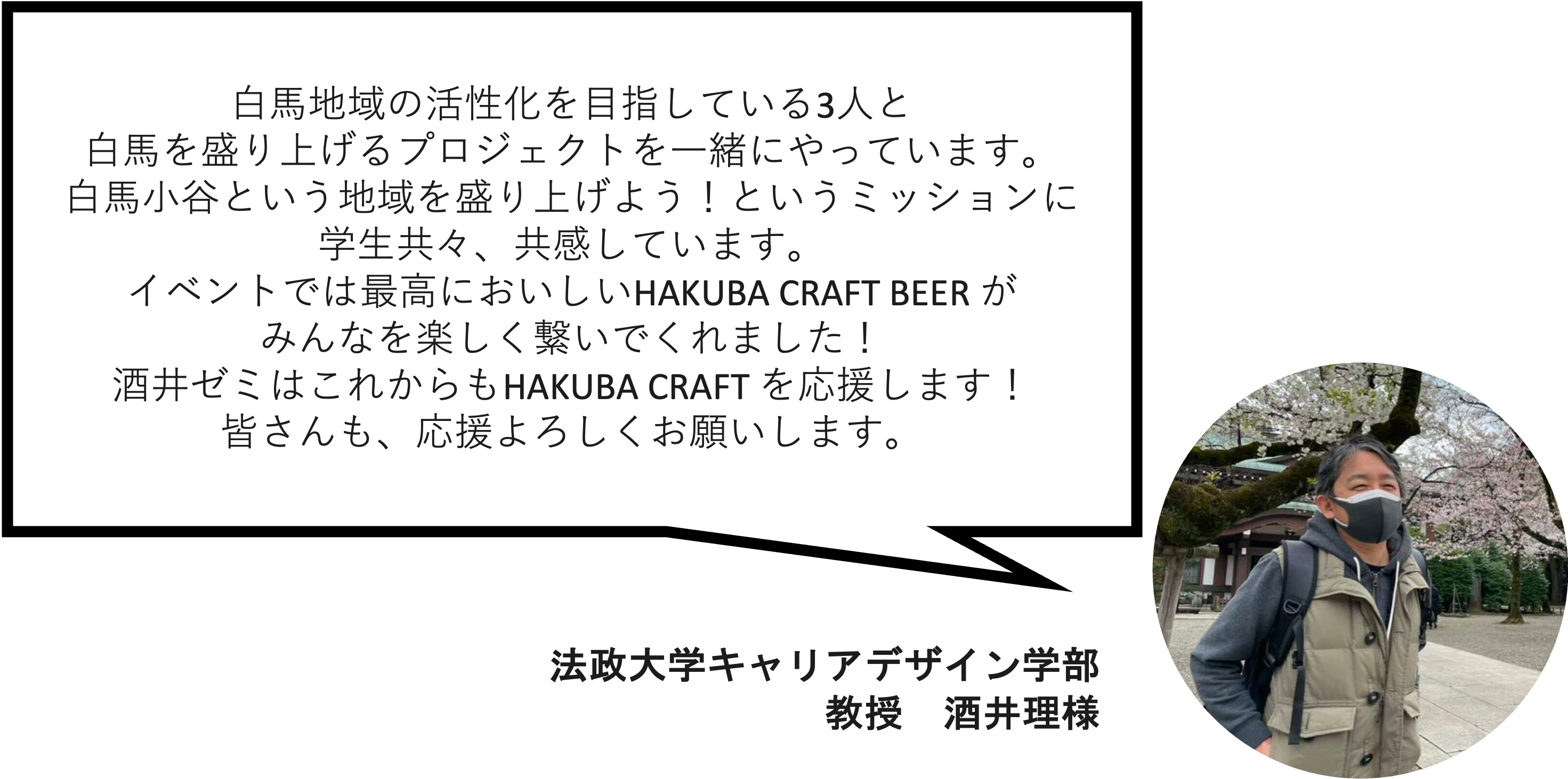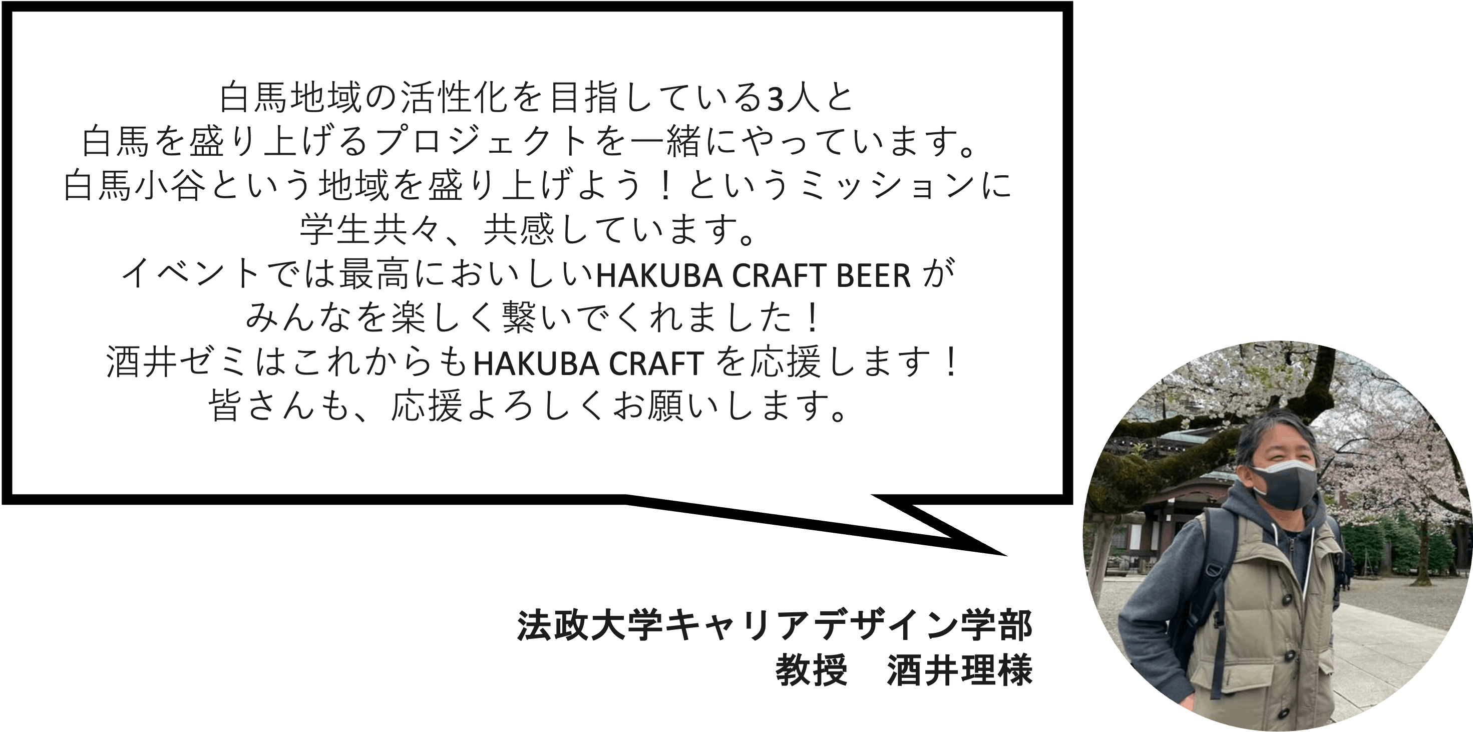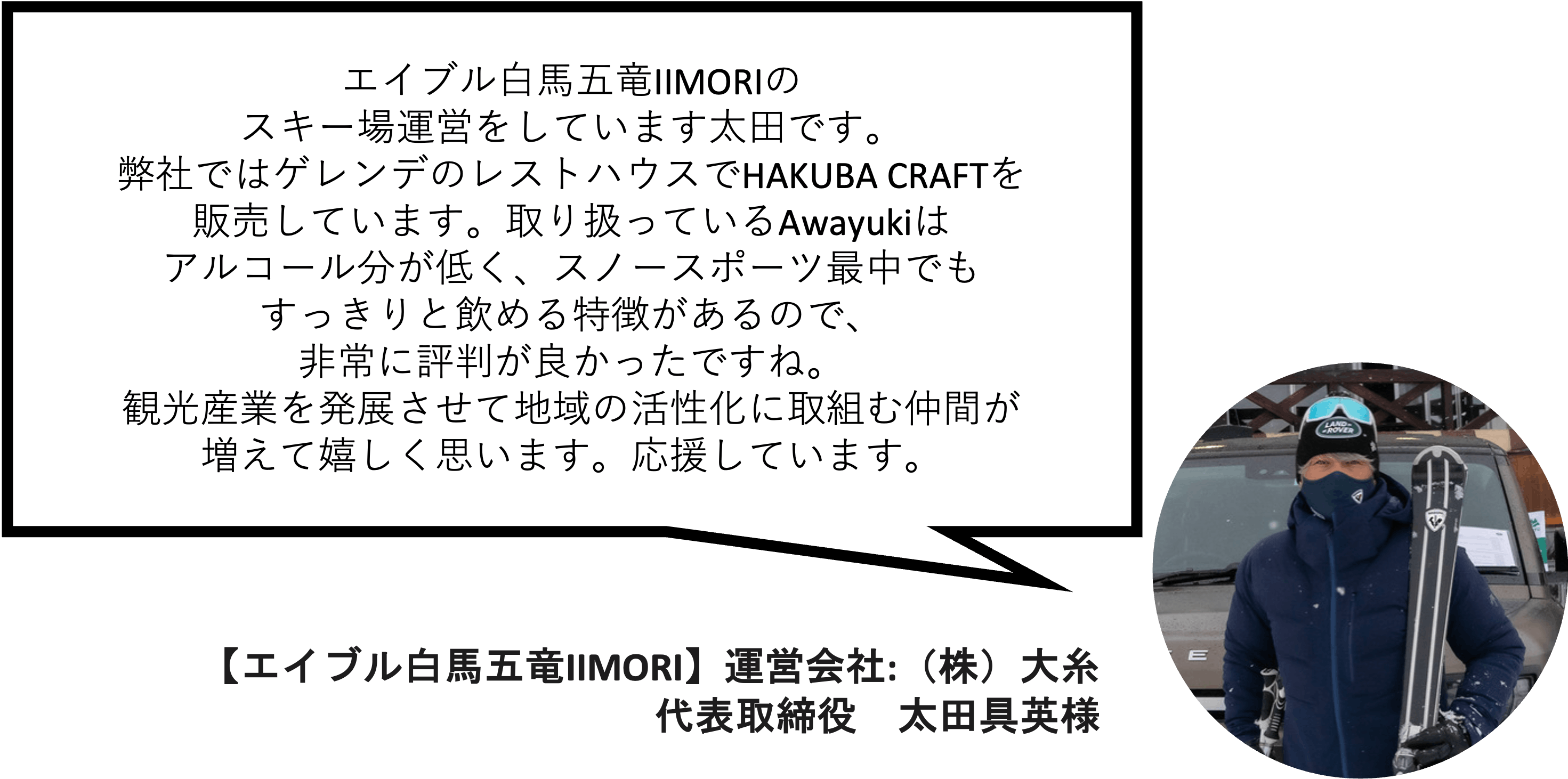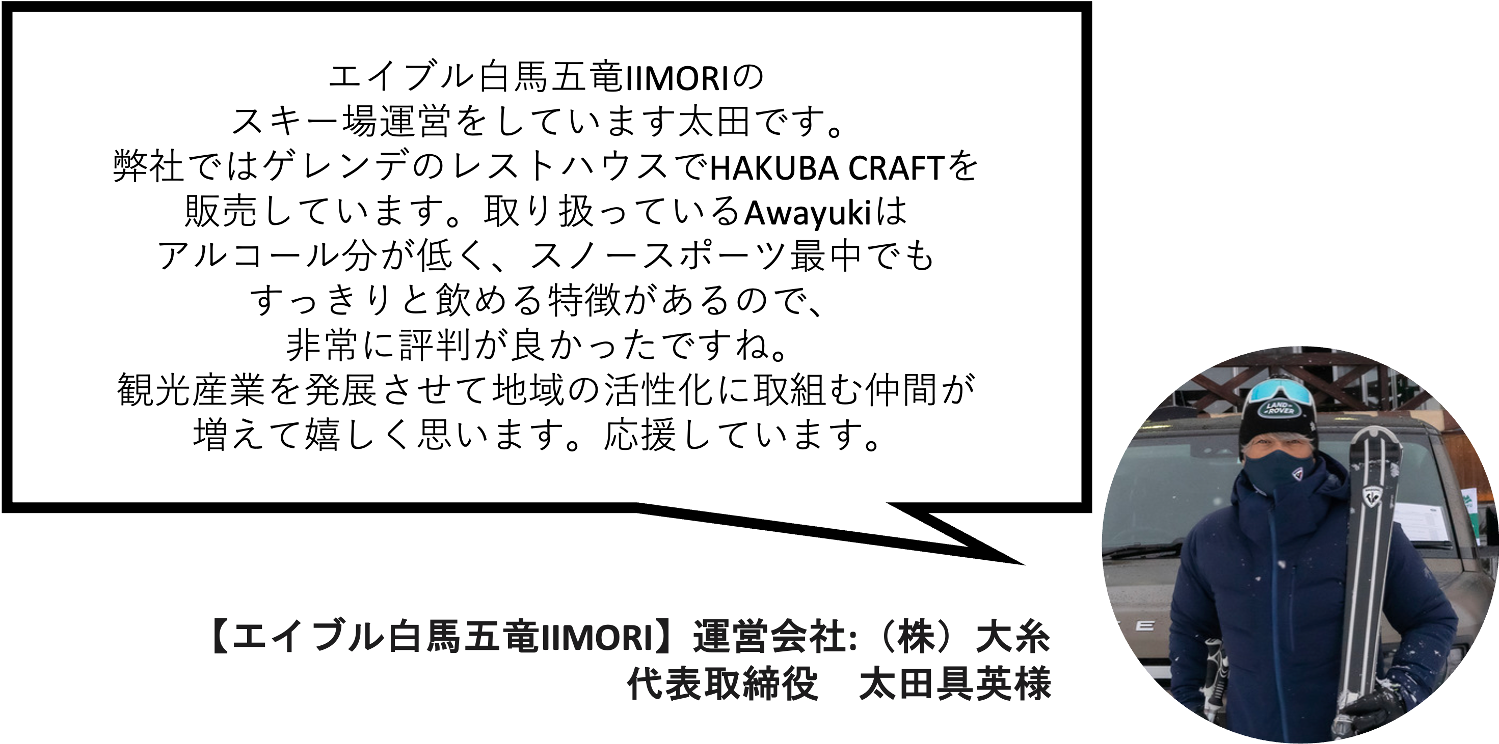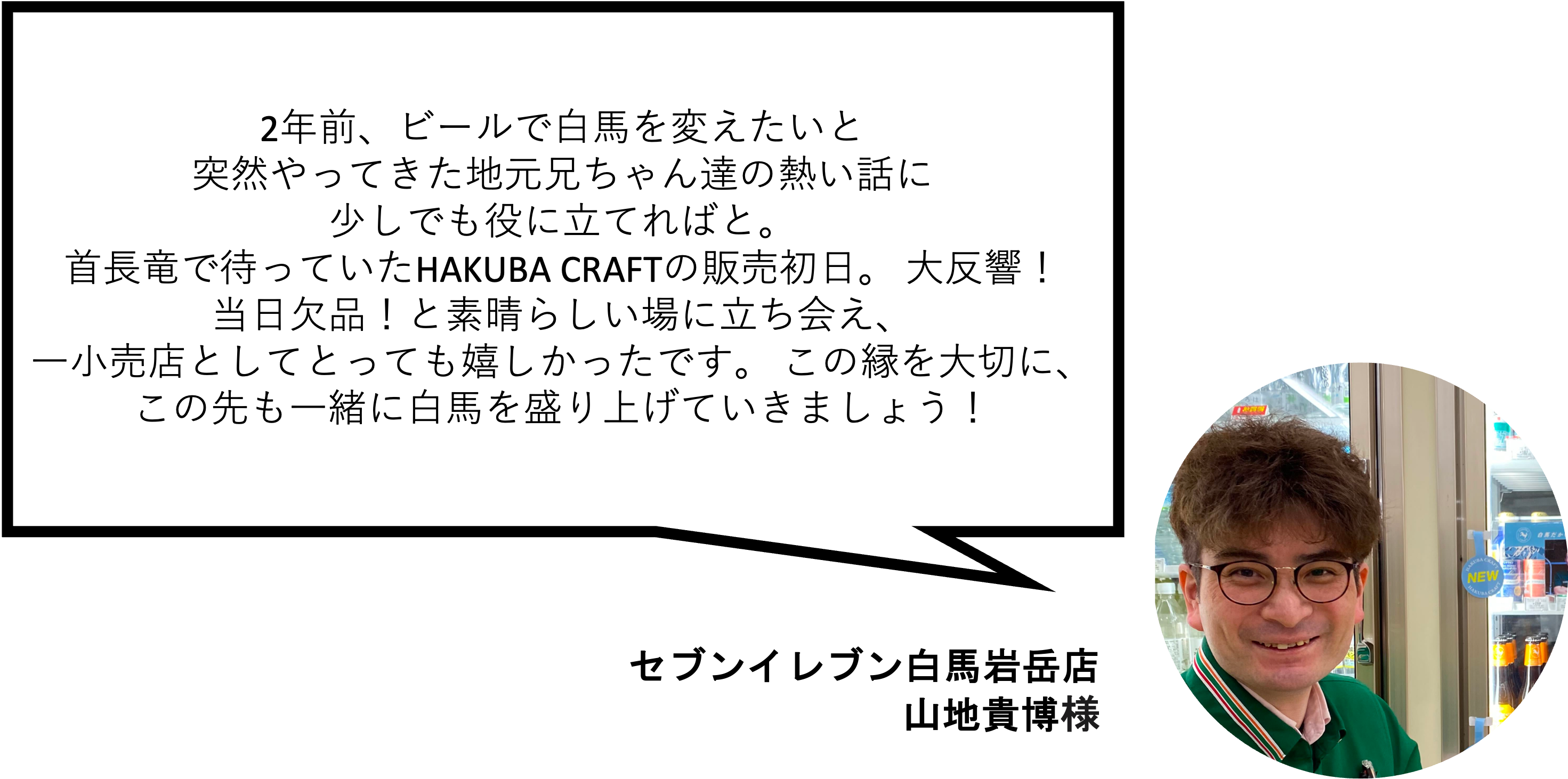 まずは私たちが地元愛にあふれていることを知ってもらう。次にクラフトビールを好きになってもらう。そして“白馬”、“HAKUBA CRAFT”のファンになってもらう。そのためになるべくお客様と直接話せて、小回りを効かせられる地元での販売にこだわってきました。