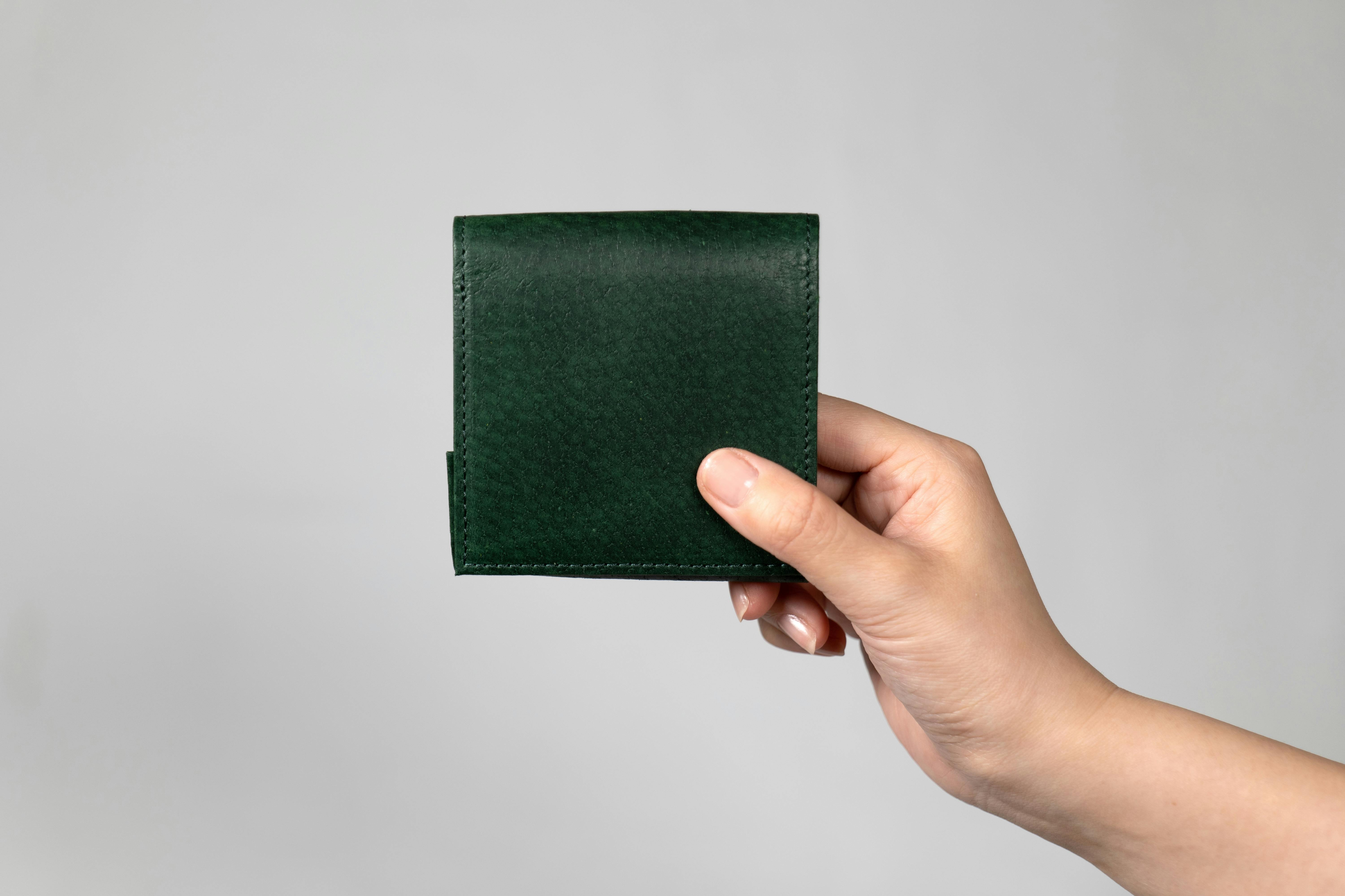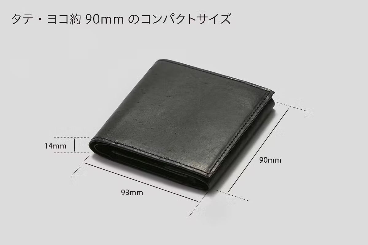 財布の使い方を限定しません。キャッシュレス化が進む社会に向けてカードだけ財布に入れる人も、紙幣・コイン・カードなど普通の財布の使い方をする人も快適に使える薄い二つ折り革財布です。以下はカード10枚、コイン16枚、紙幣10枚を入れた場合。