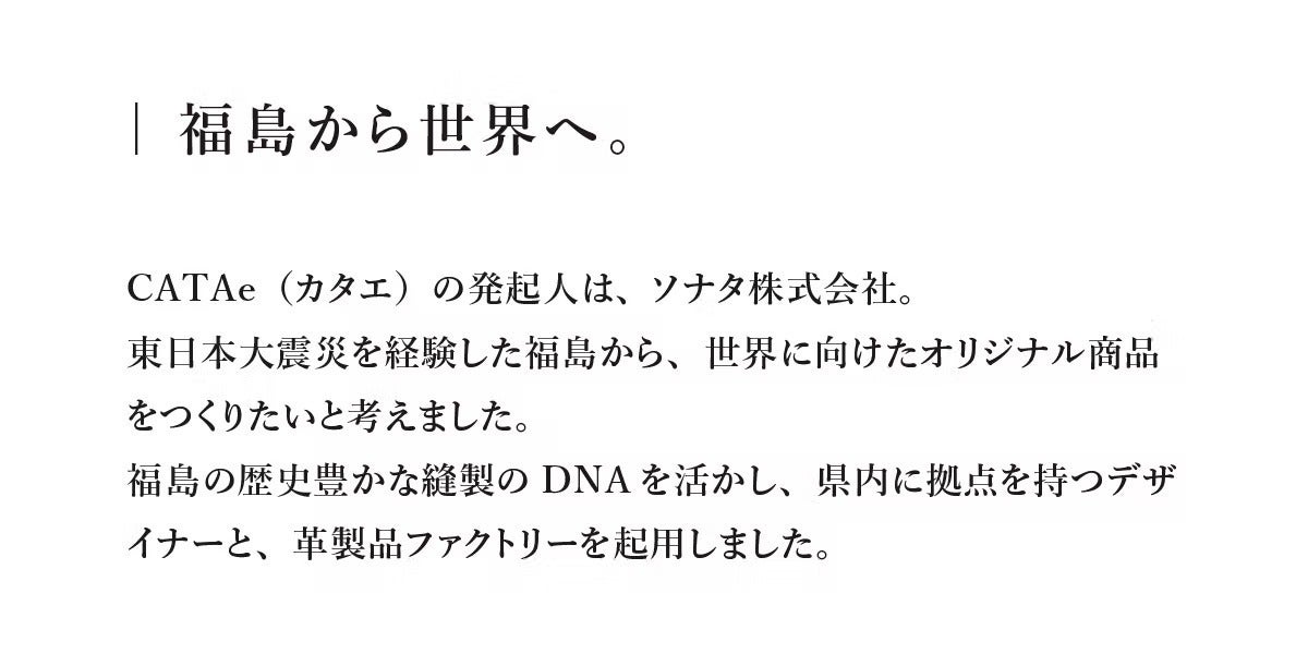そのような環境にある福島県でオリジナルの商品を企画、開発し、世界に向けて発信できるビジネスの種をつくりたくて、革財布「CATAe」プロジェクトを始動させました。