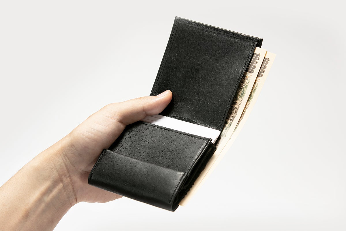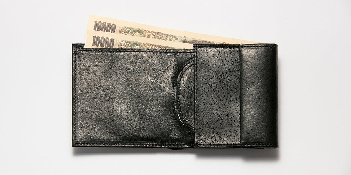 CATAe(カタエ)はプライバシーに配慮し、深いポケットでお札をしっかり包みました。もちろん、折らずにそのまま収納できます。